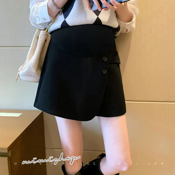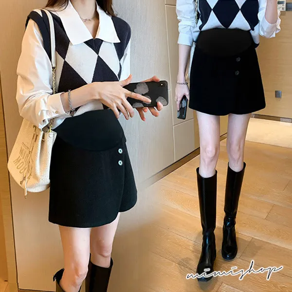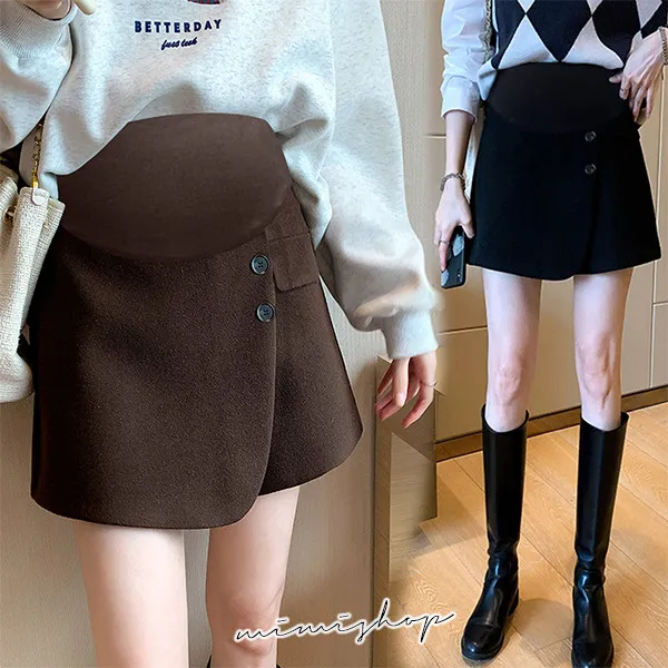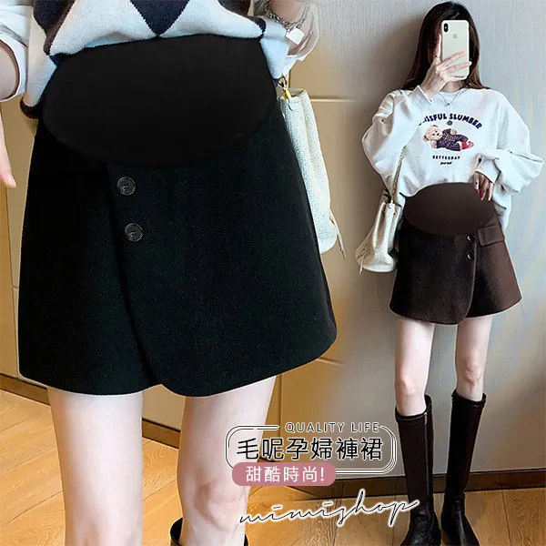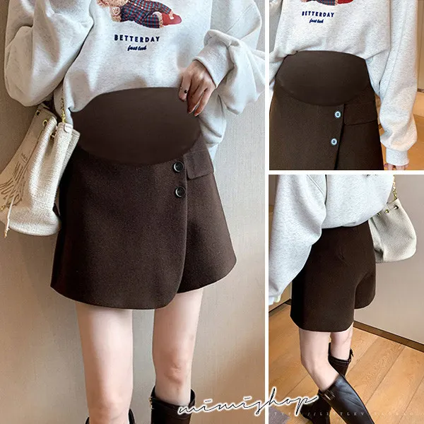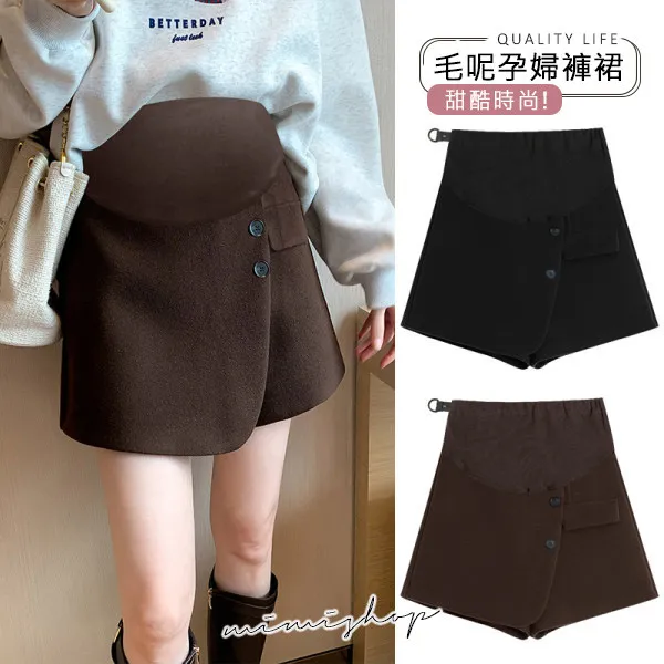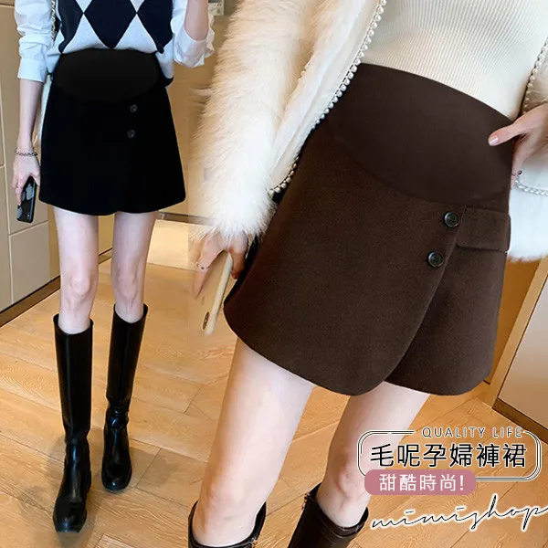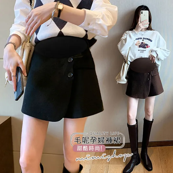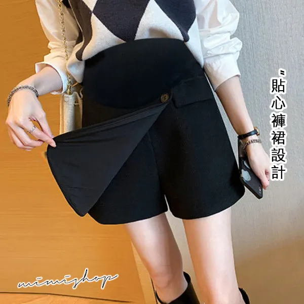 【P62280】甜酷時尚 優質毛呢A字褲裙 孕婦短褲 托腹設計