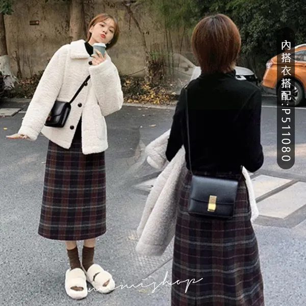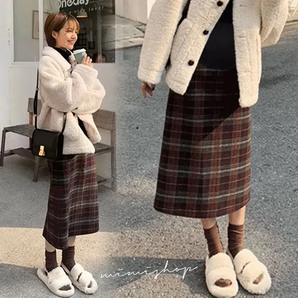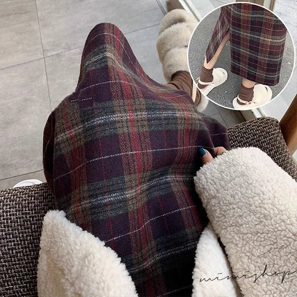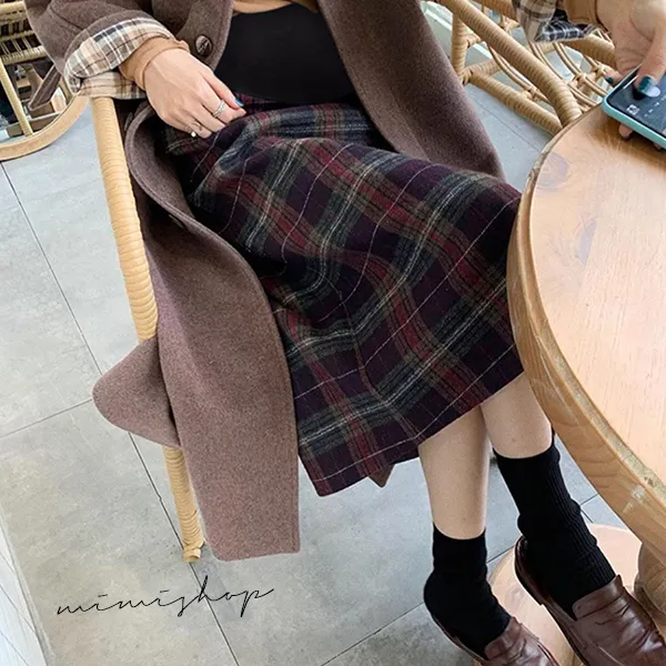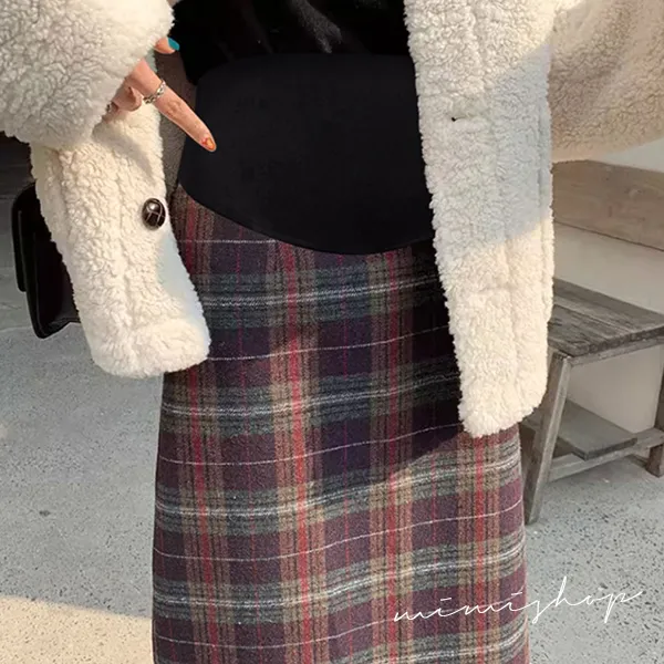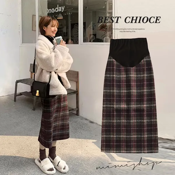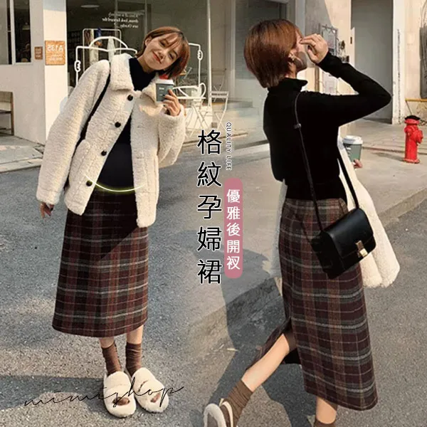 【P62282】復古蘇格蘭 後開叉毛呢格紋裙 孕婦裙 托腹設計