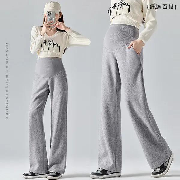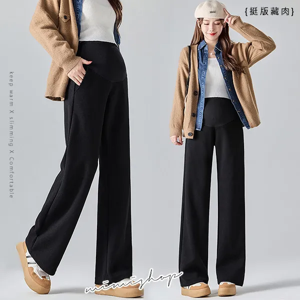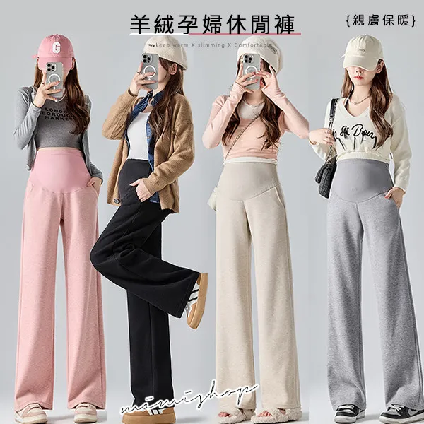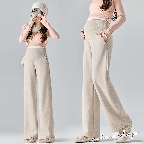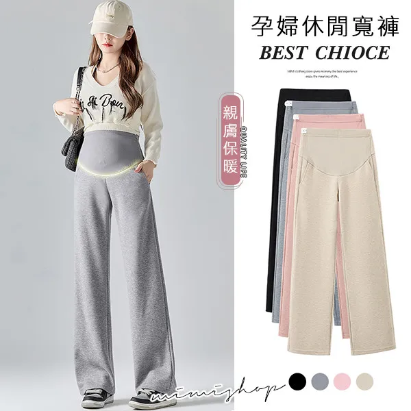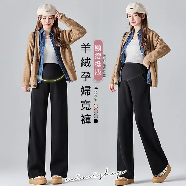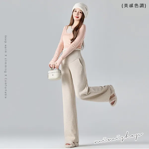 【P62311】顯瘦挺版 秋冬羊絨寬褲 孕婦褲 直筒褲 休閒褲