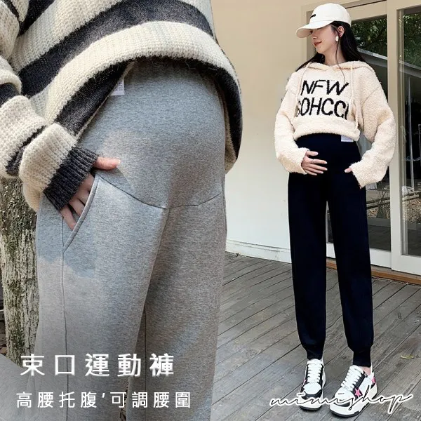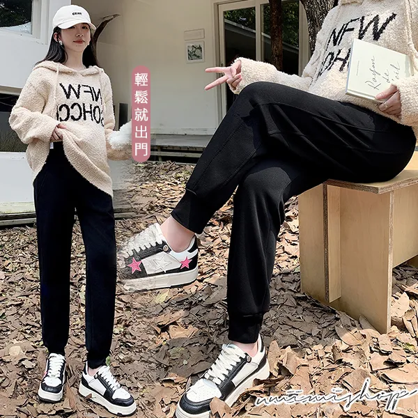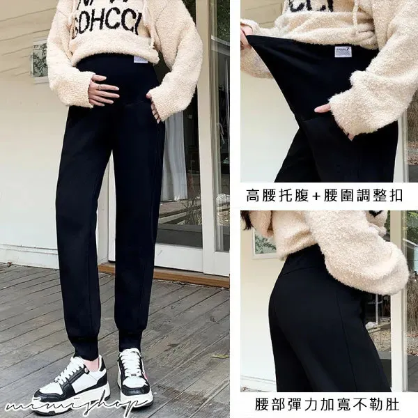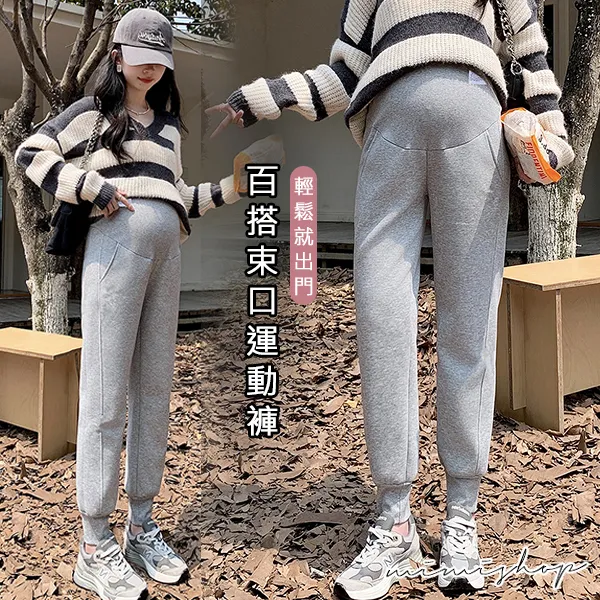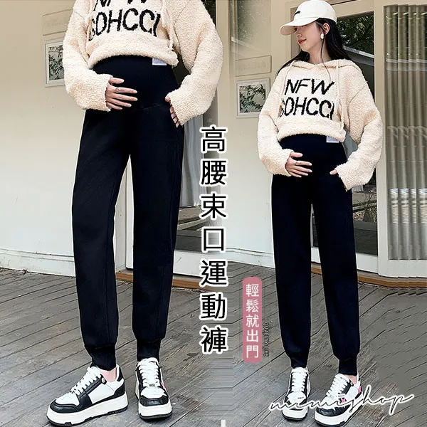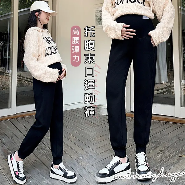 【P62316】輕鬆就出門 高腰托腹 束腳設計運動褲 休閒褲 孕婦褲
