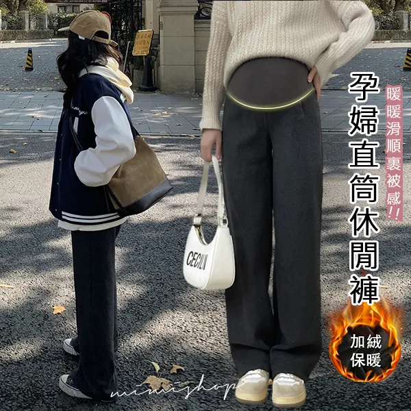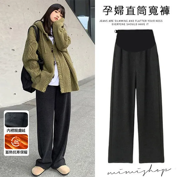 【P62327】怕冷推薦 修長溫暖加絨休閒褲 孕婦褲 直筒褲