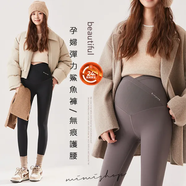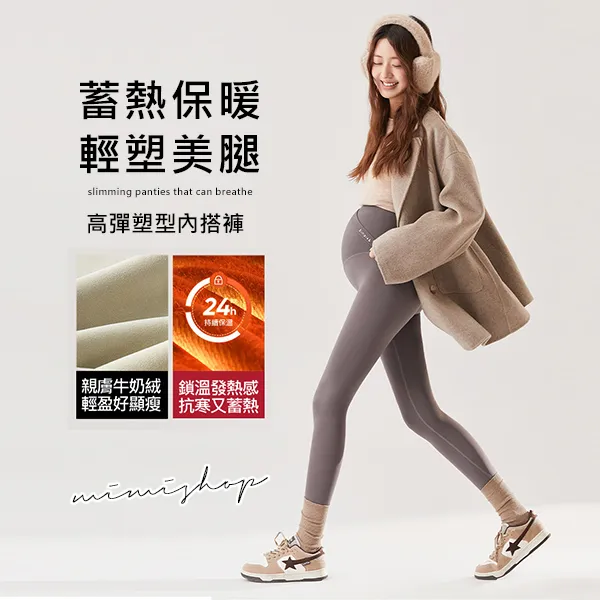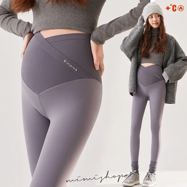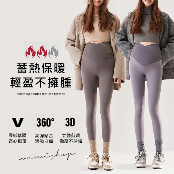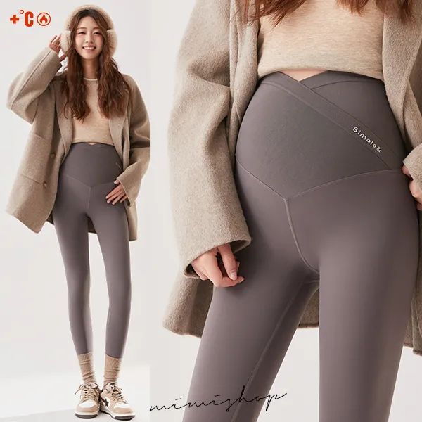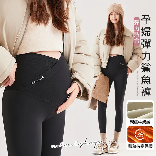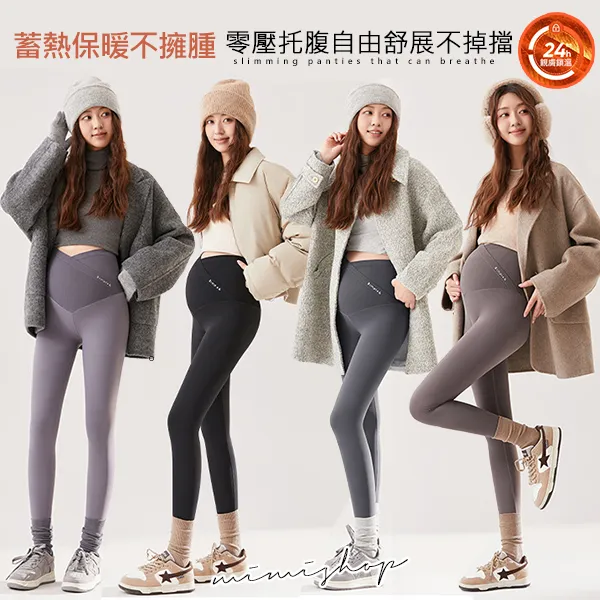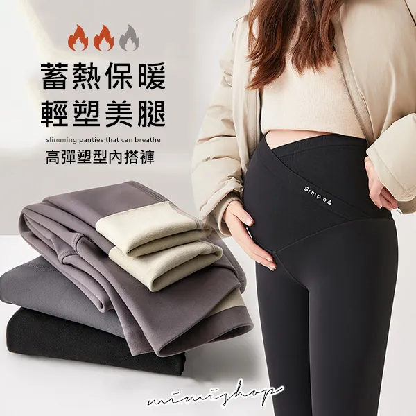 【P62329】溫暖塑型 加絨交叉托腹褲 內搭褲 孕婦褲