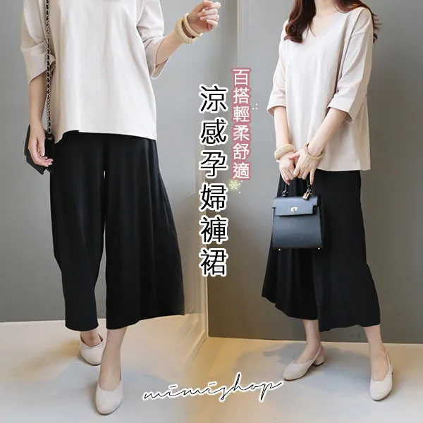 【P62341】舒適百搭 涼感莫代爾孕婦褲裙 寬褲 闊腿褲