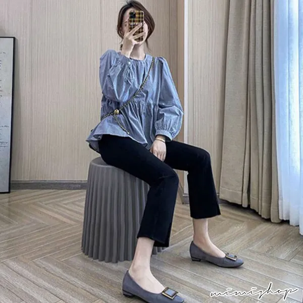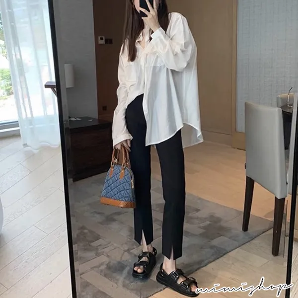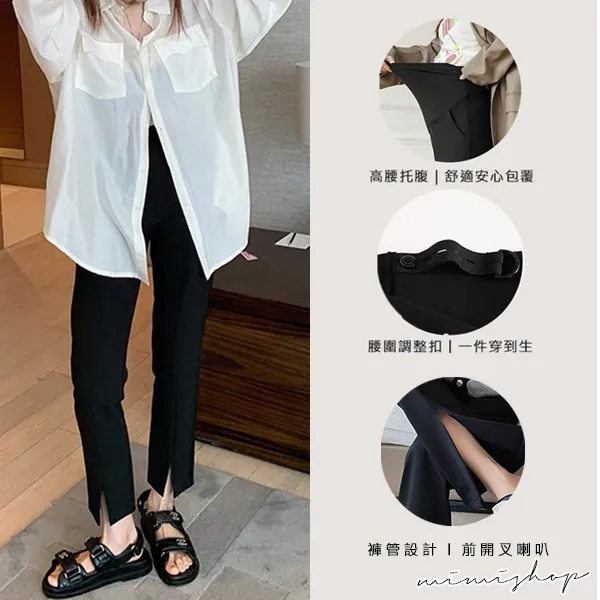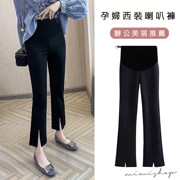 【P62342】微喇設計 立體剪裁前開叉西裝褲 孕婦褲 托腹設計