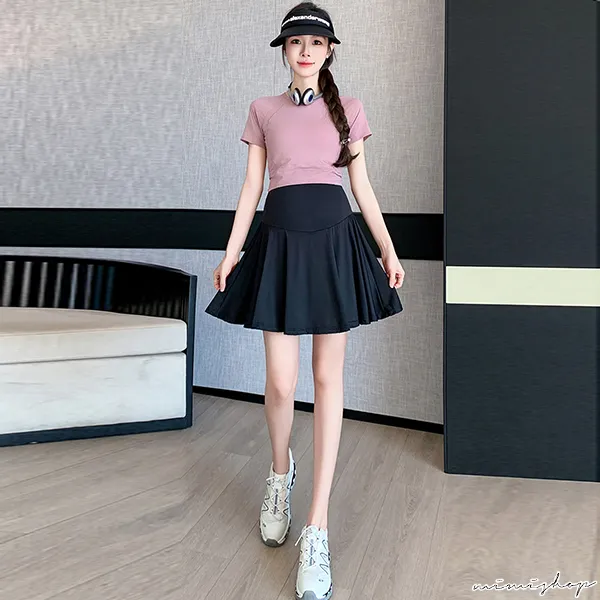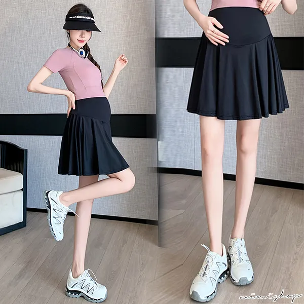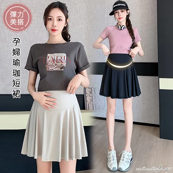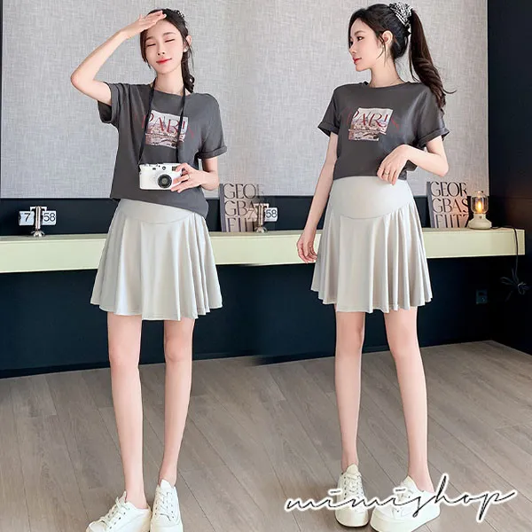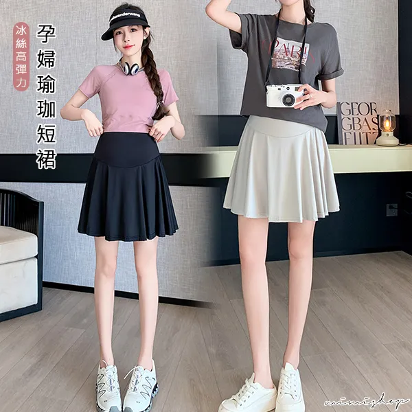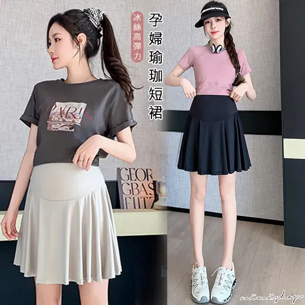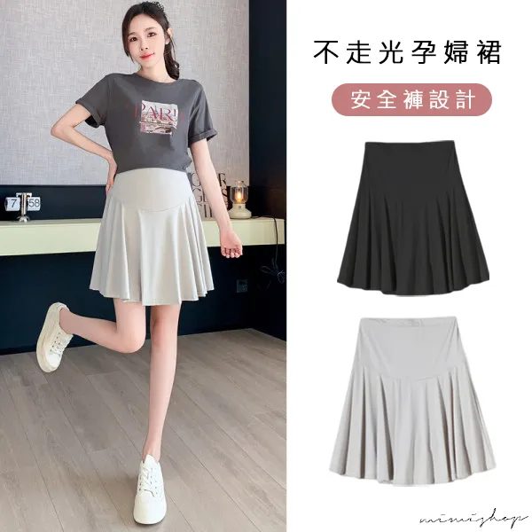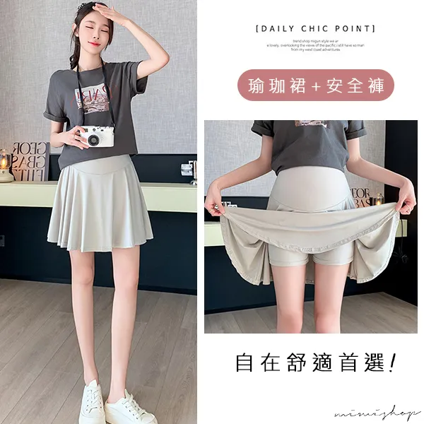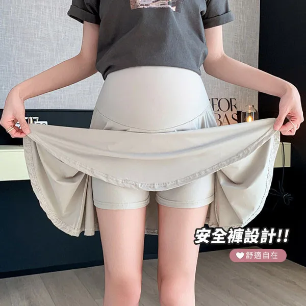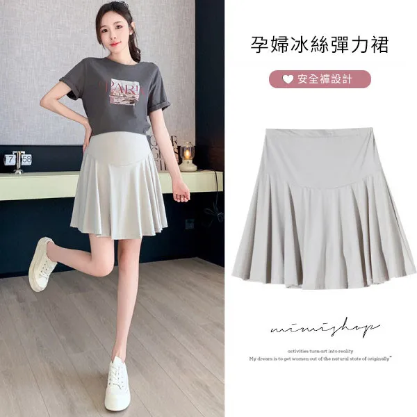 【P62343】美搭時尚 冰絲高彈力孕婦短裙 安全褲設計