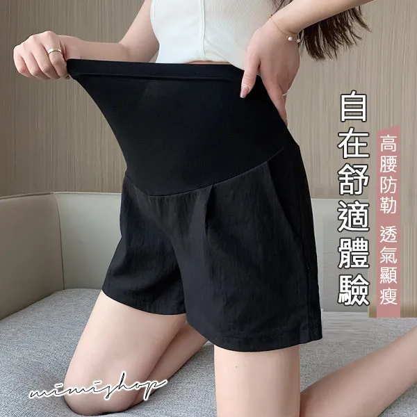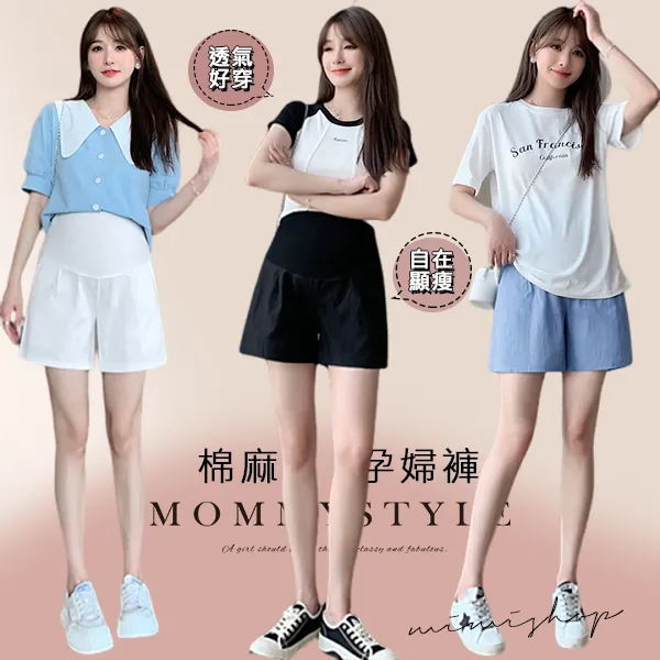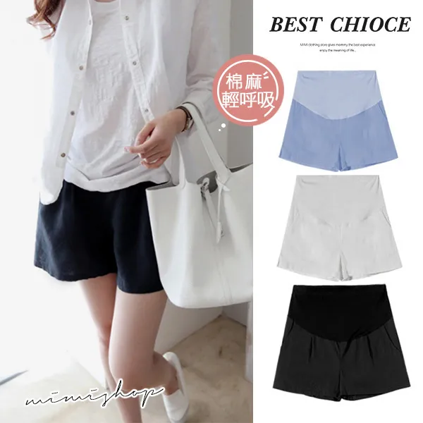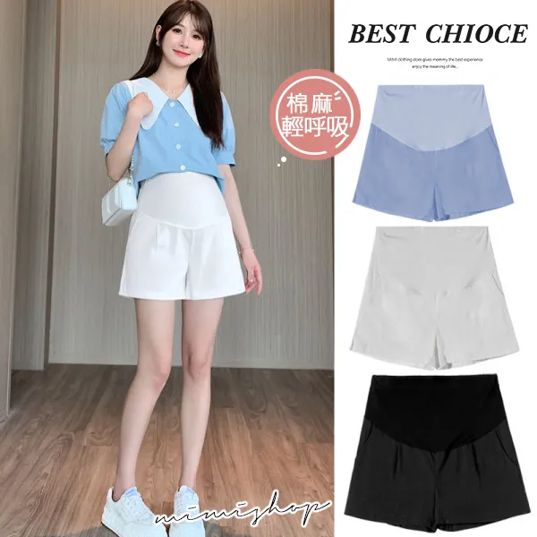 【P62352】好感輕呼吸 透氣棉麻孕婦短褲 舒適不勒肚