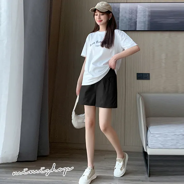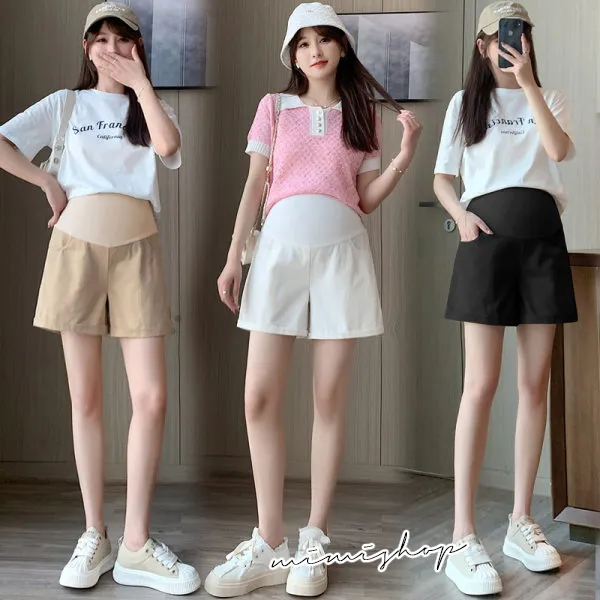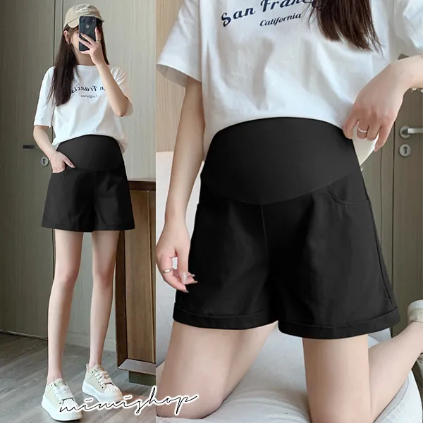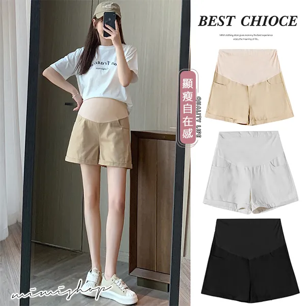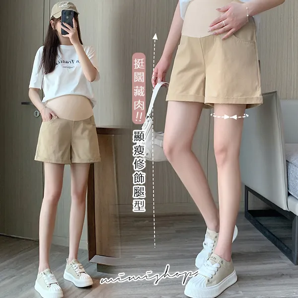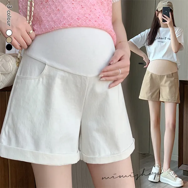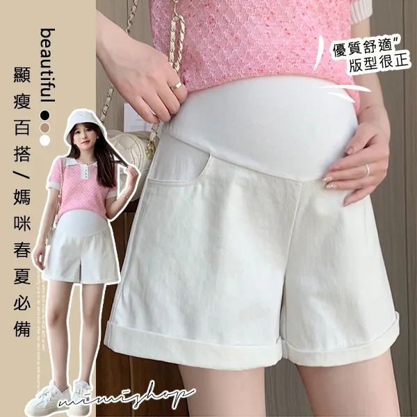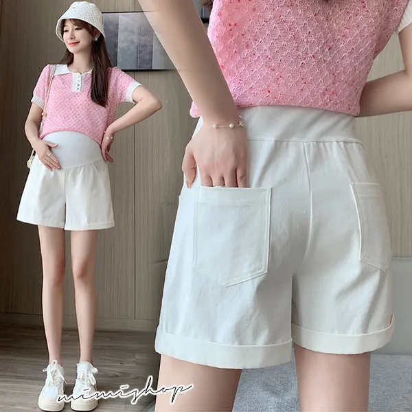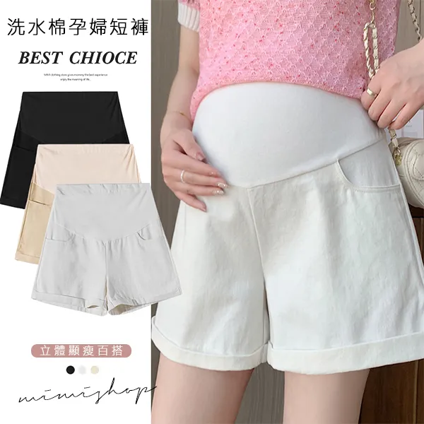 【P62353】夏日調色盤 洗水牛仔棉短褲 孕婦褲