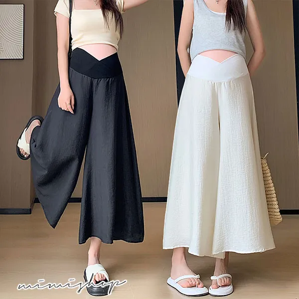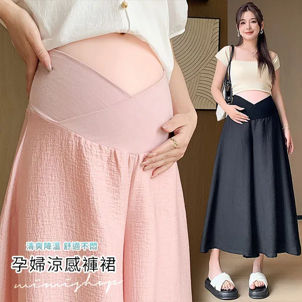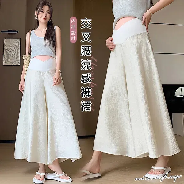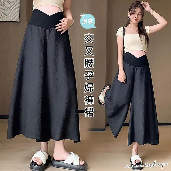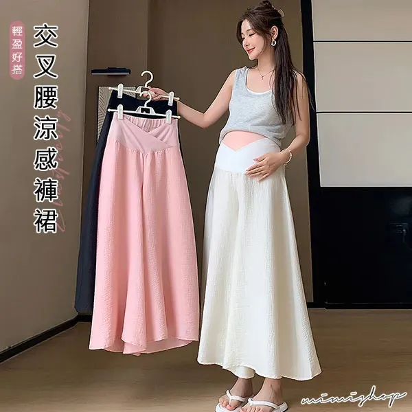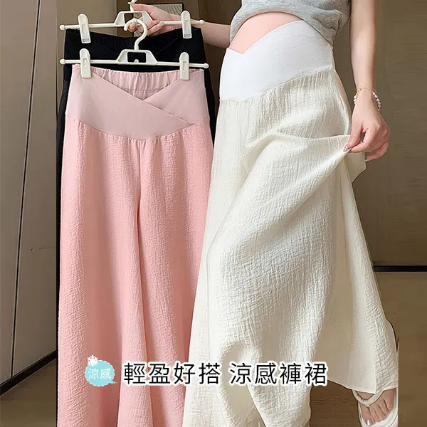 【P62372】輕盈好搭 不束縛 交叉腰防曬褲 涼感寬褲 孕婦褲裙