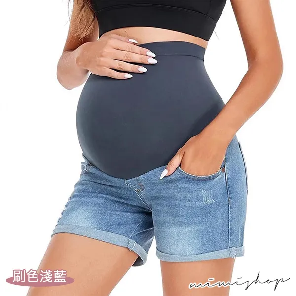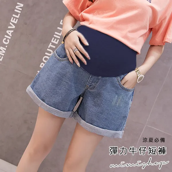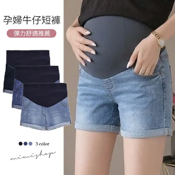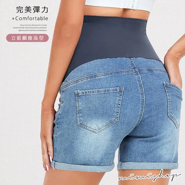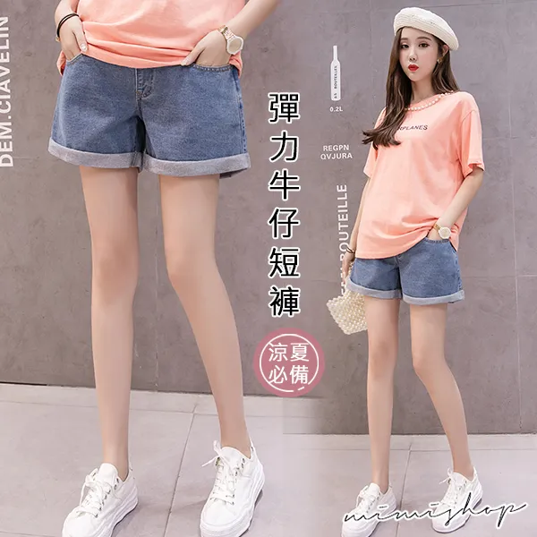 【P62377】涼夏必備 完美彈力牛仔短褲 孕婦褲 舒適推薦