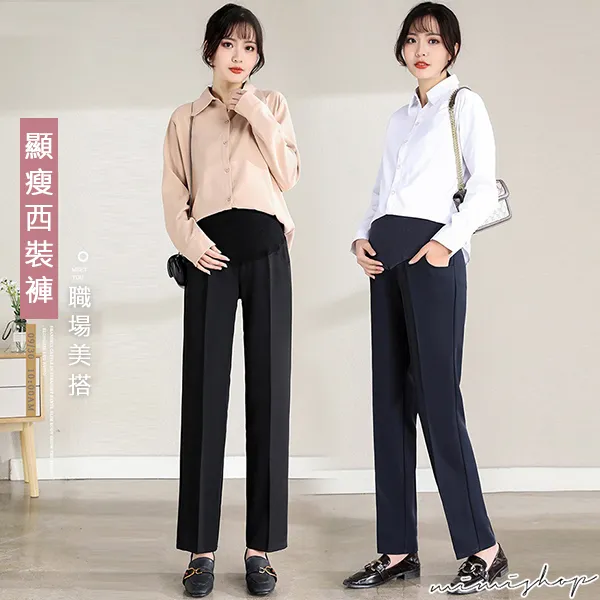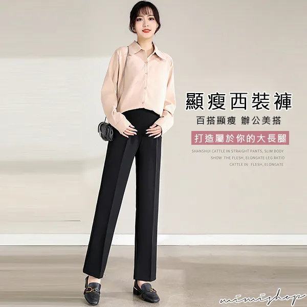 【P62378】職人嚴選 顯瘦修長防皺西裝褲 孕婦褲 直筒褲 休閒褲