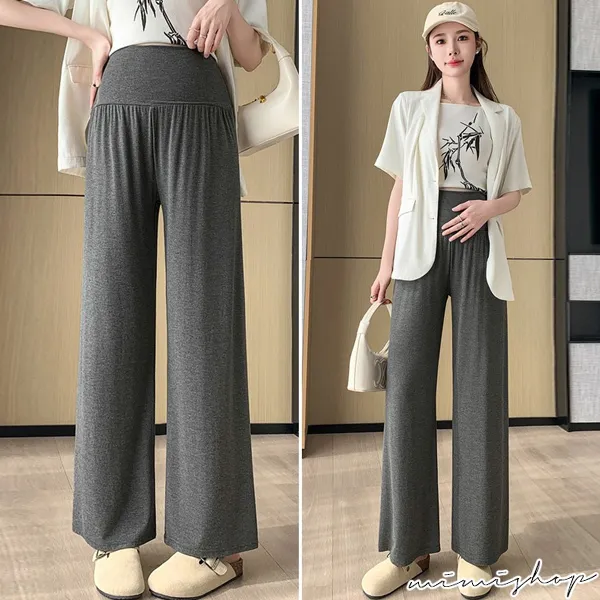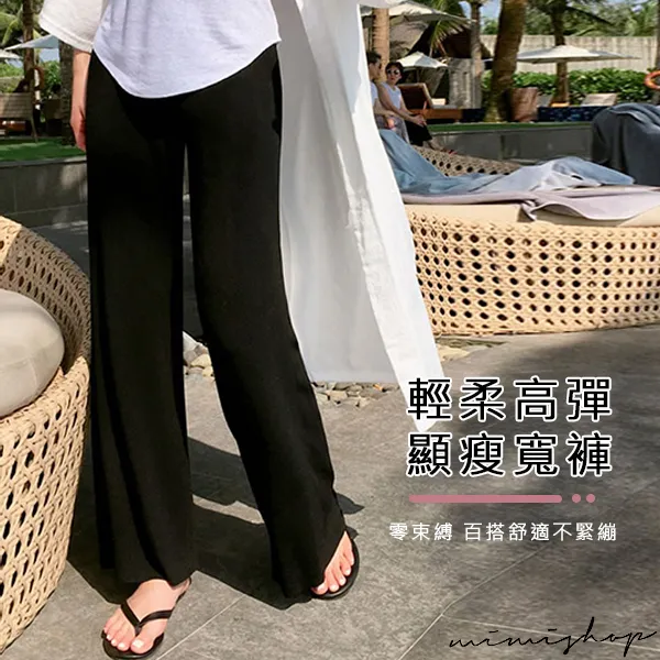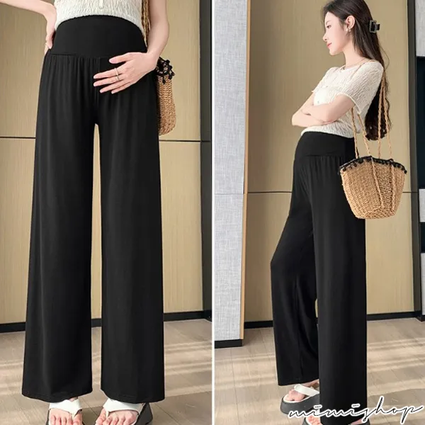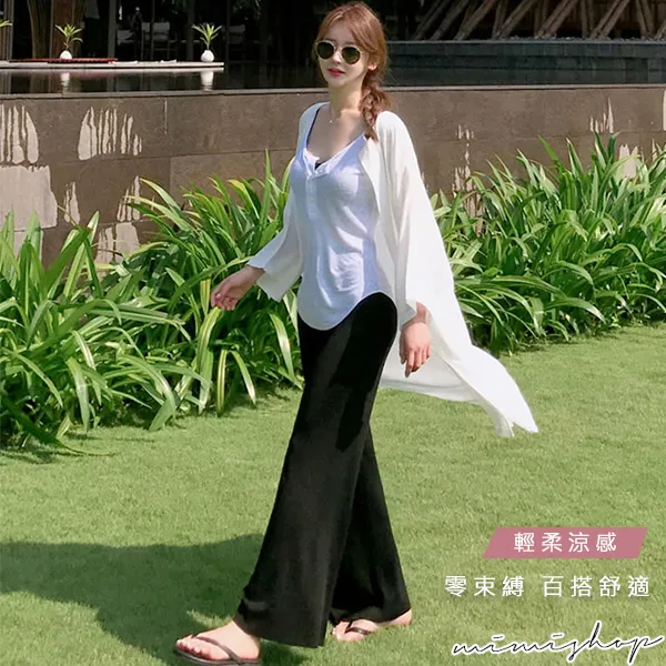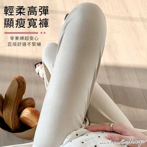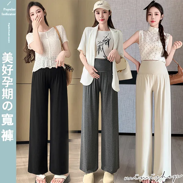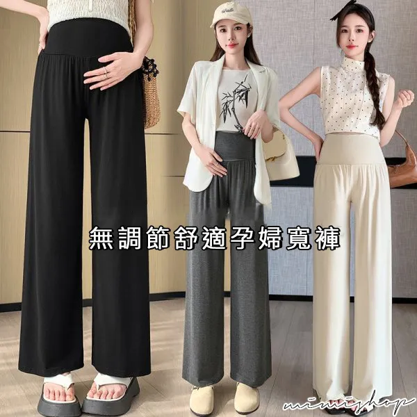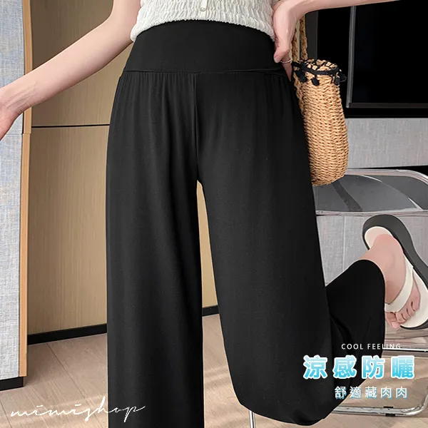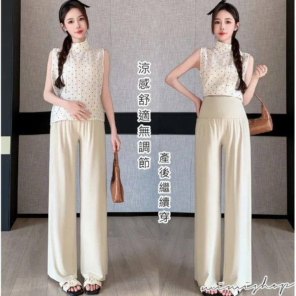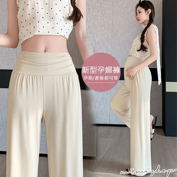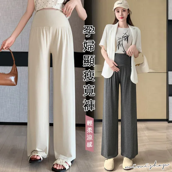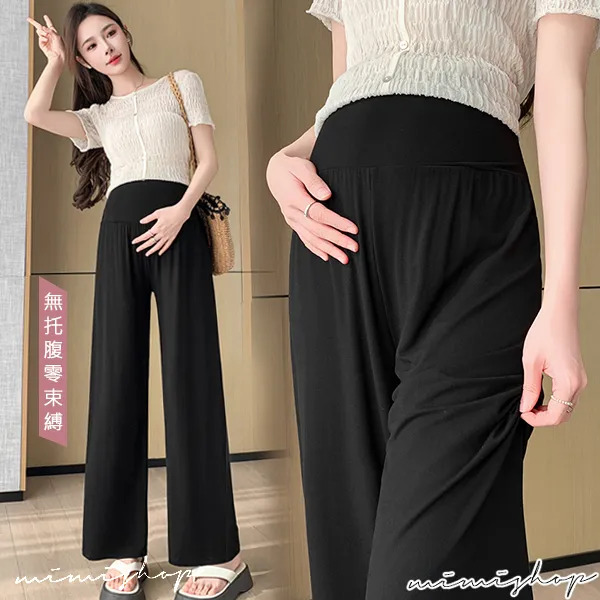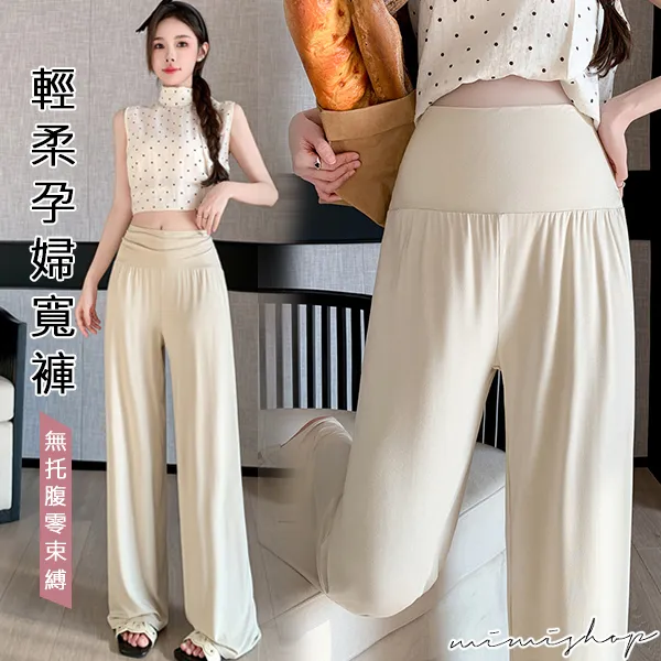 【P62380】輕柔涼感 零束縛安心孕婦褲 闊腿褲 顯瘦寬褲
