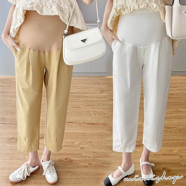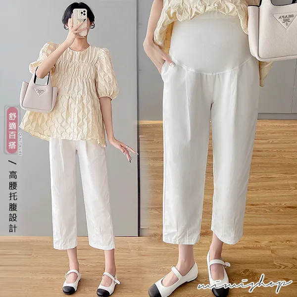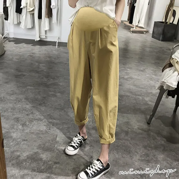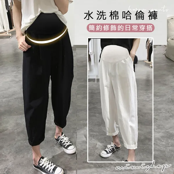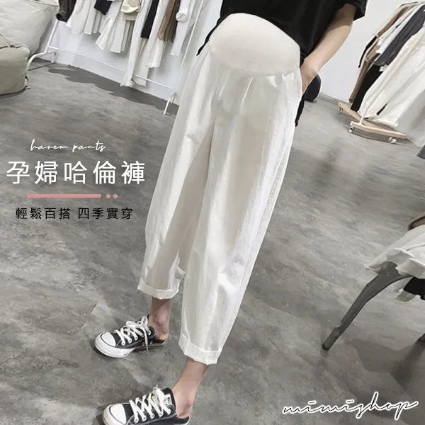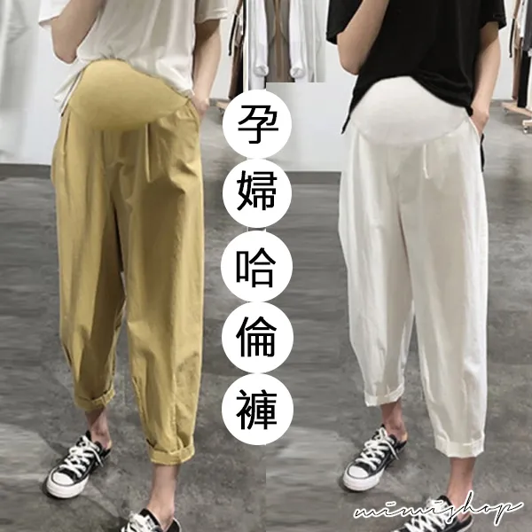 【P62381】就愛舒適百搭 水洗棉休閒哈倫褲 孕婦褲 托腹褲