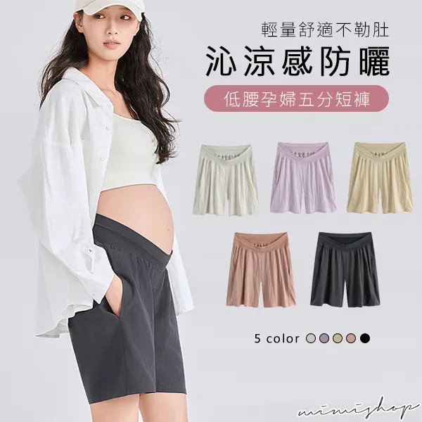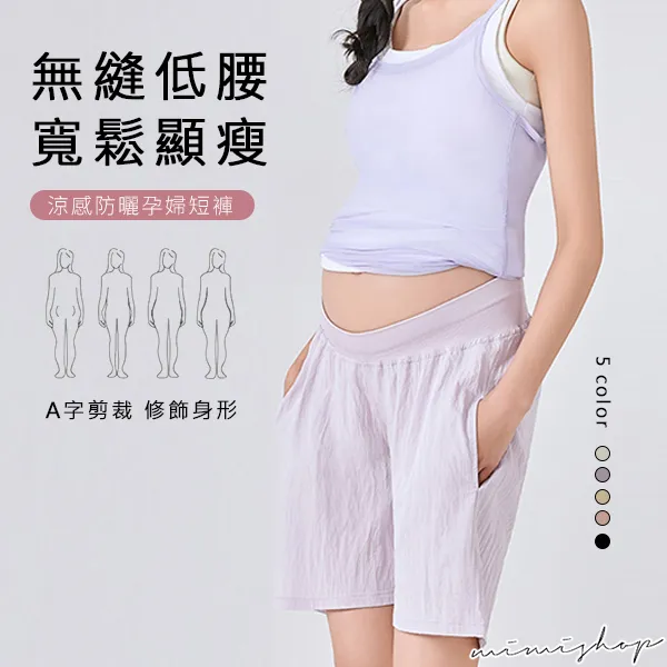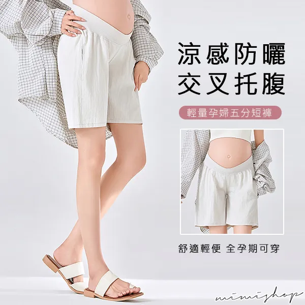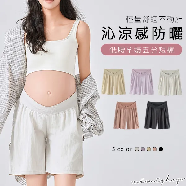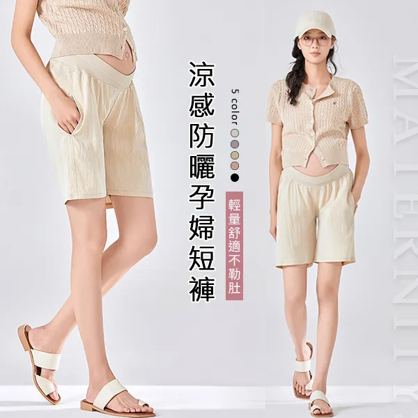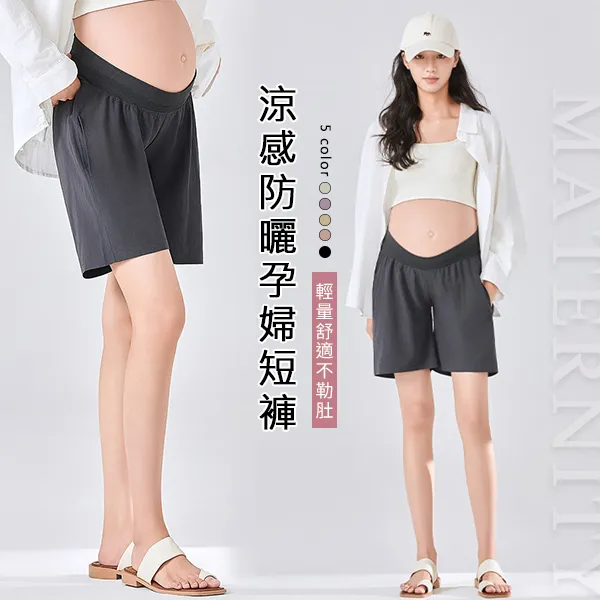 【P62384】 輕量舒適 涼感防曬孕婦短褲 五分褲 不勒肚