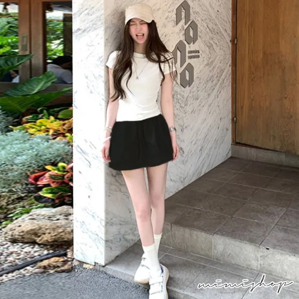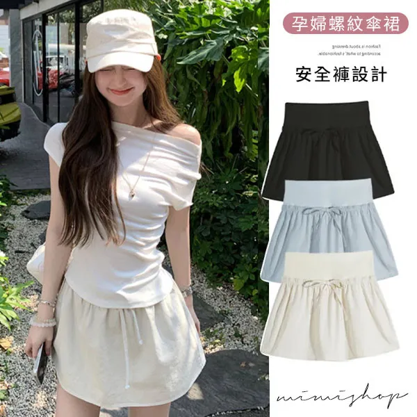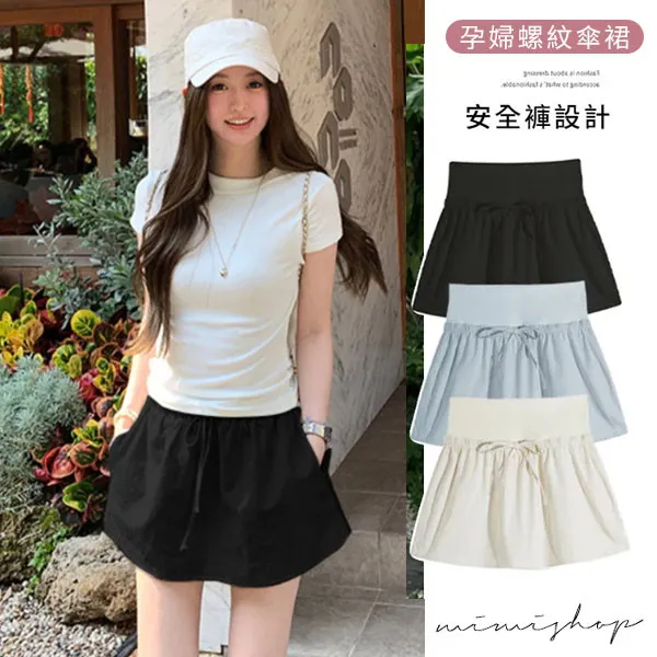 【P62395】時髦miu感 顯瘦螺紋傘裙 孕婦褲裙 安全褲設計