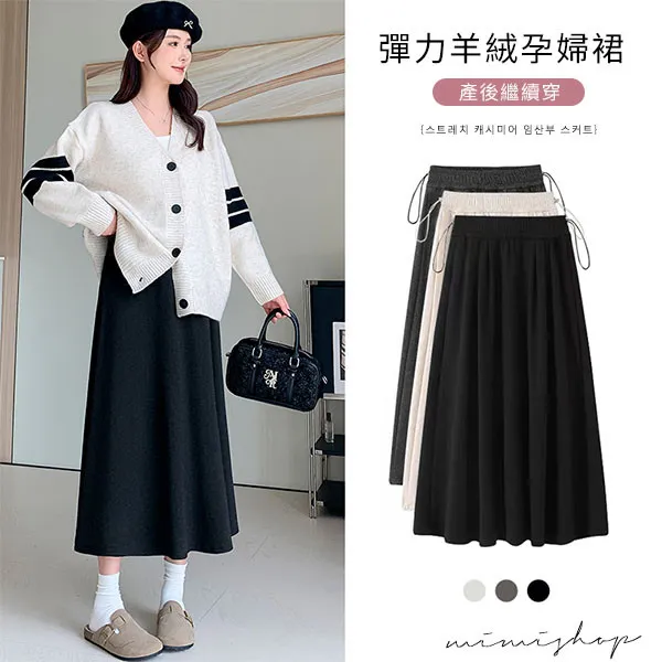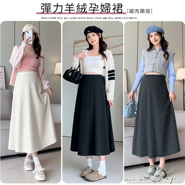 【P62406】藏肉顯瘦 暖糯寬襬彈力羊絨孕婦裙 產後繼續穿
