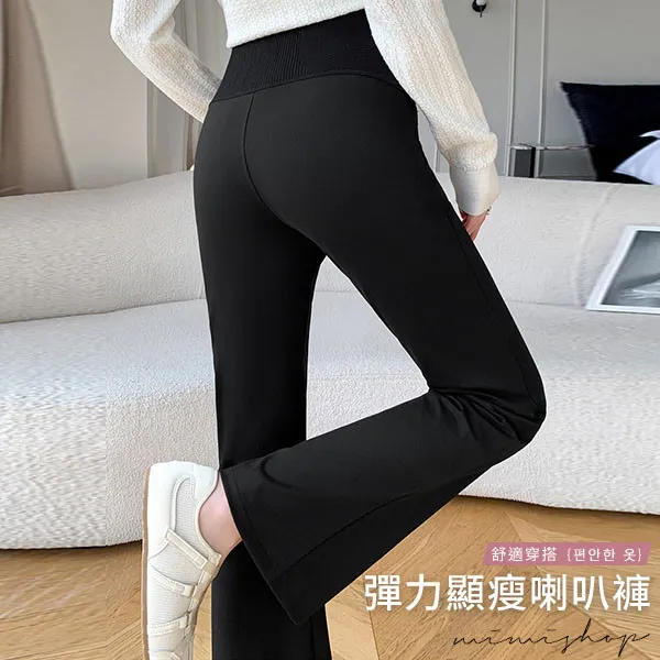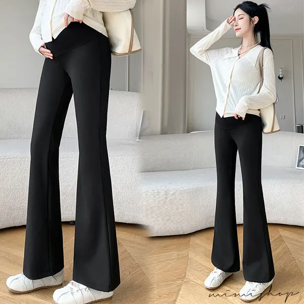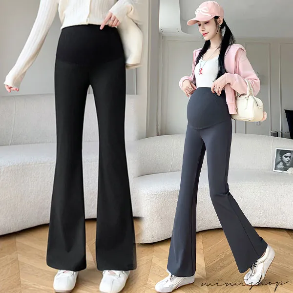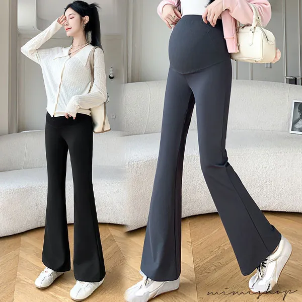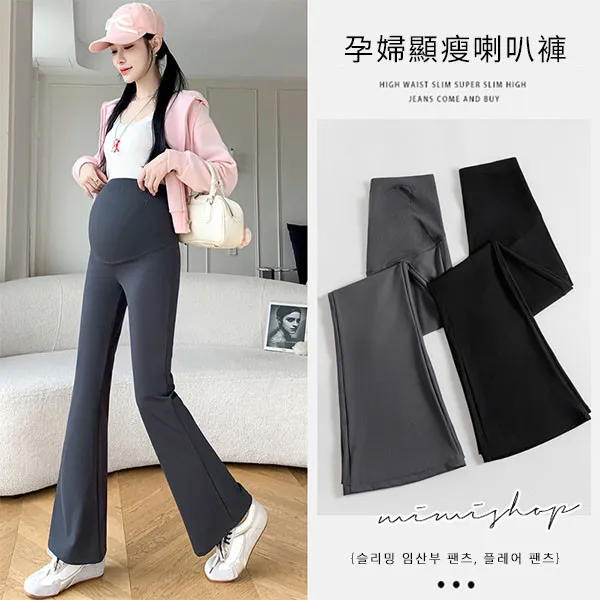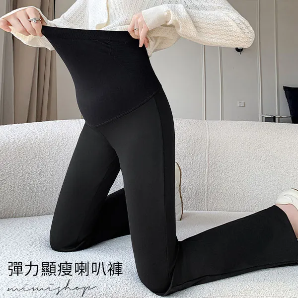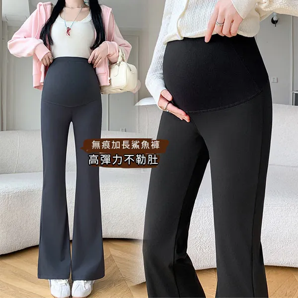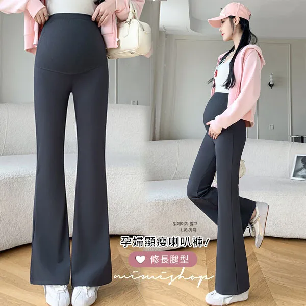 【P62407】修長腿型 高彈力不勒肚 顯瘦孕婦褲 喇叭褲 瑜珈褲