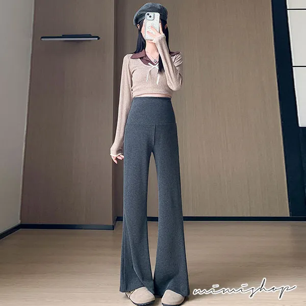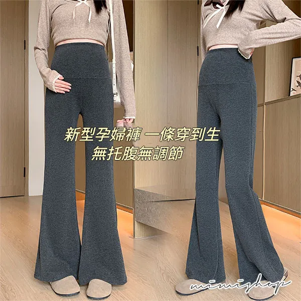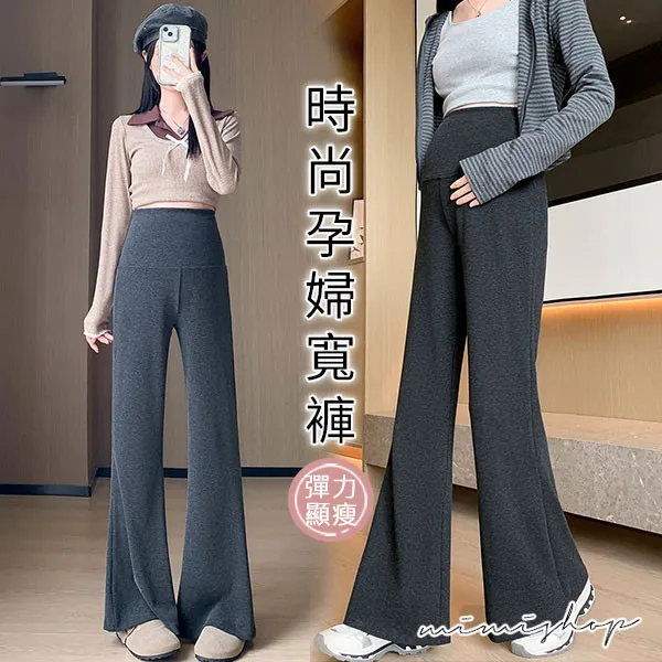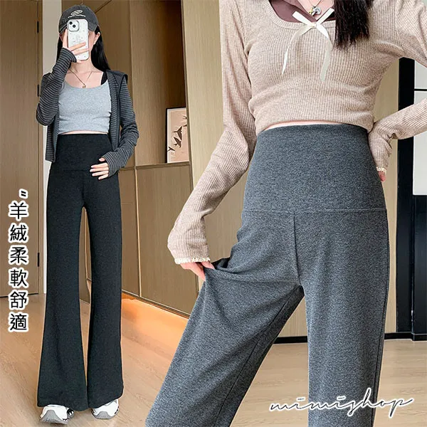 【P62413】優質版型 顯瘦彈力羊絨寬褲 孕婦褲 產後繼續穿