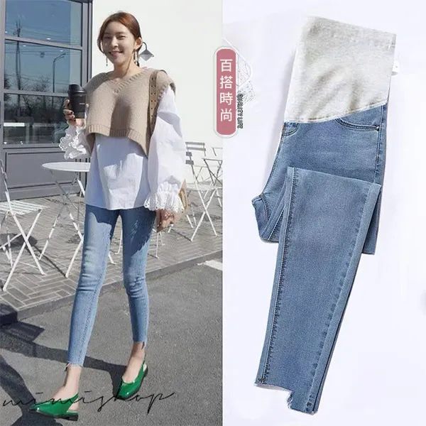 【P62414】百搭時尚 水洗牛仔孕婦褲 小腳褲 二款選擇