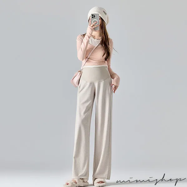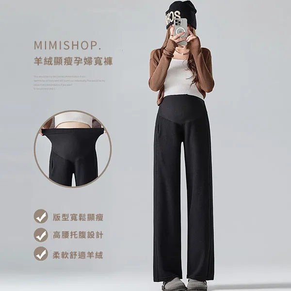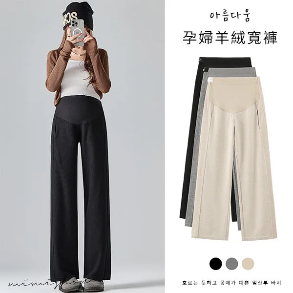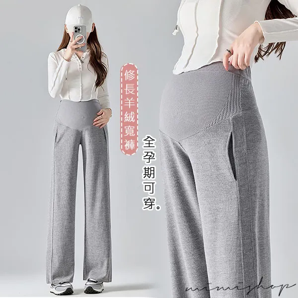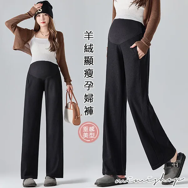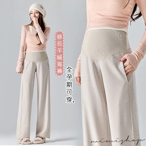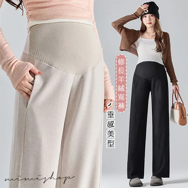 【P62418】垂感美型 修長羊絨寬褲 孕婦褲 休閒褲