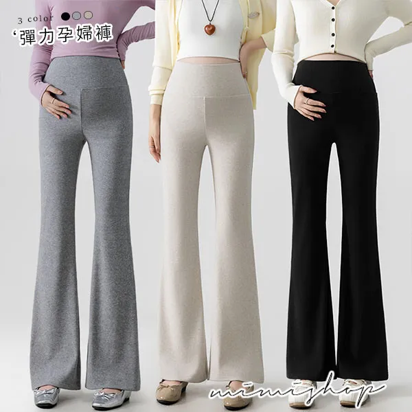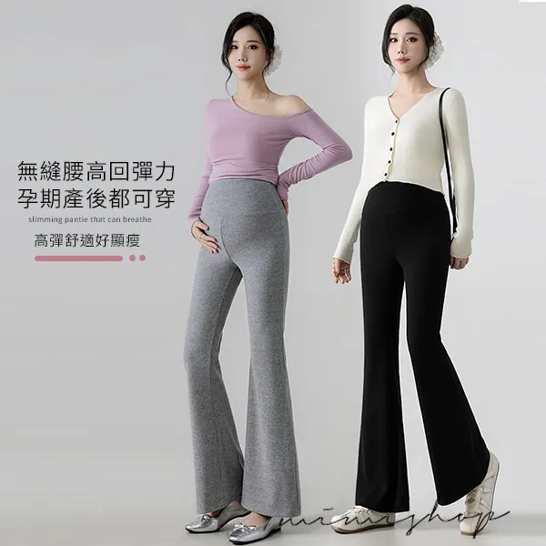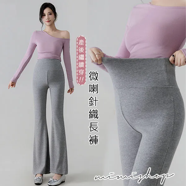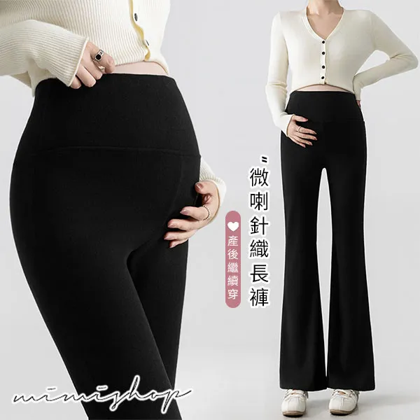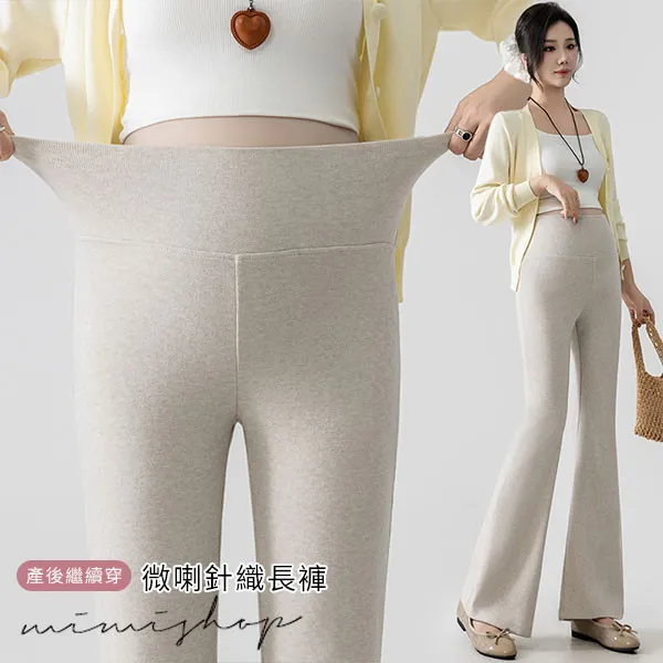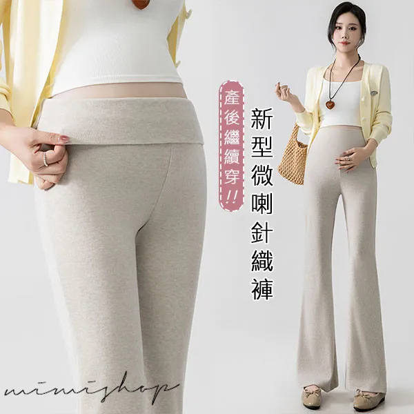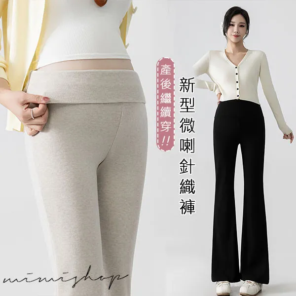 【P62421】修長美型 微喇針織長褲 彈力孕婦褲 產後繼續穿