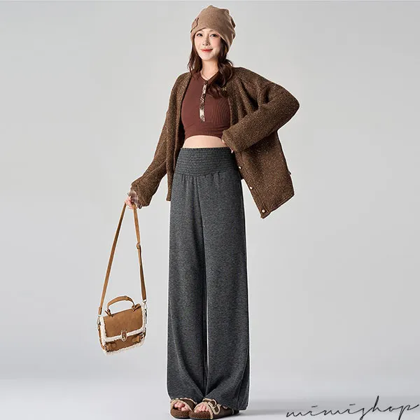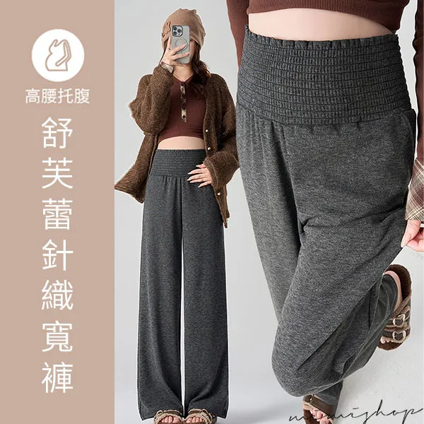 【P62422】舒芙蕾針織闊腿褲 舒適高彈不勒肚 孕婦褲 寬褲