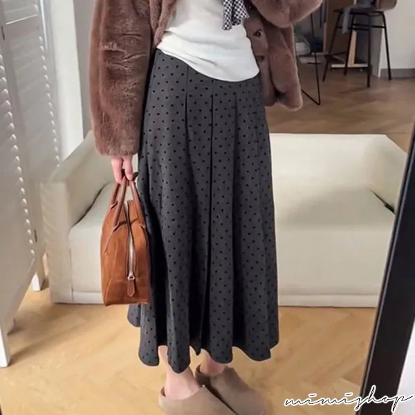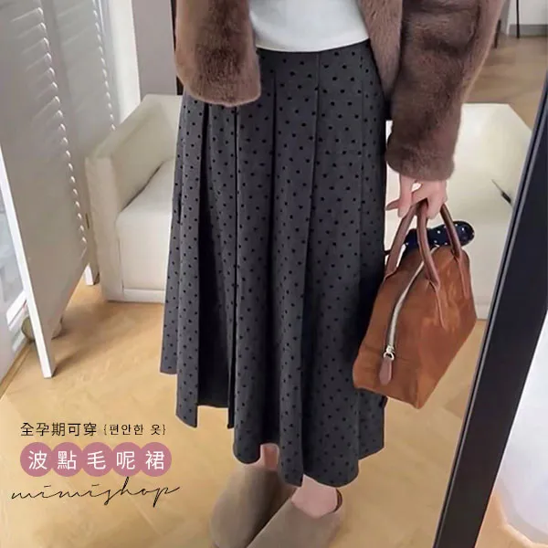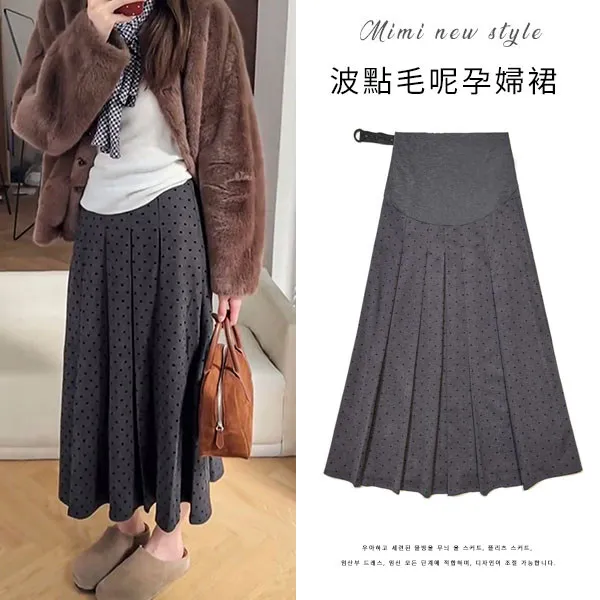 【P62423】雅緻美型 波點毛呢裙 百褶裙 孕婦裙