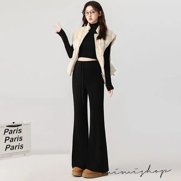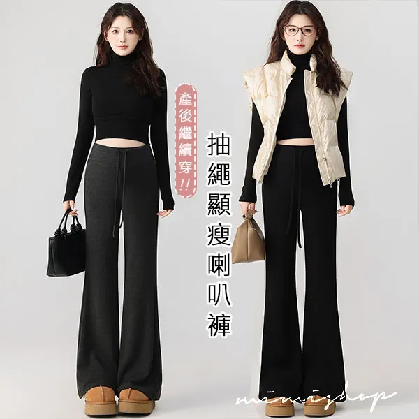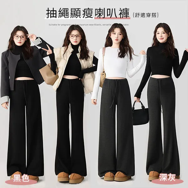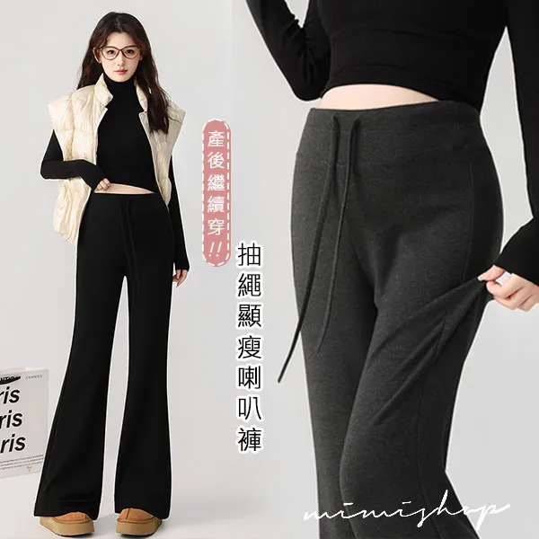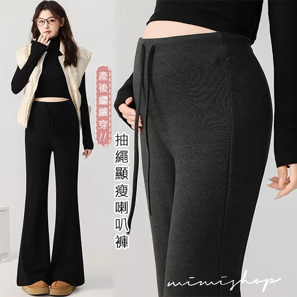 【P62431】百搭修飾 抽繩休閒褲 顯瘦喇叭褲 孕婦褲 不限孕期