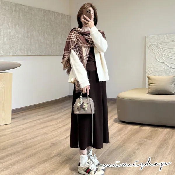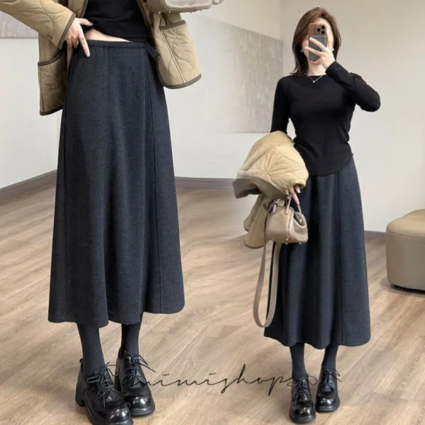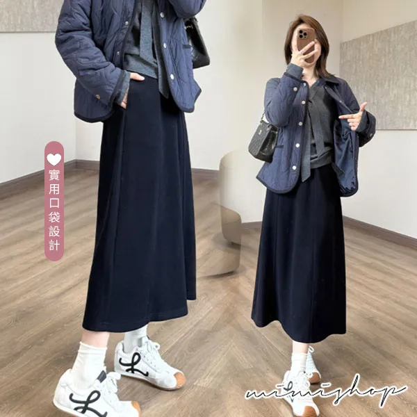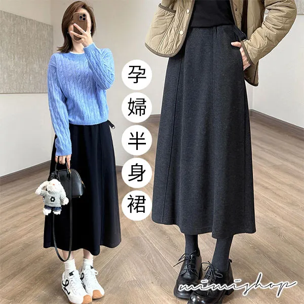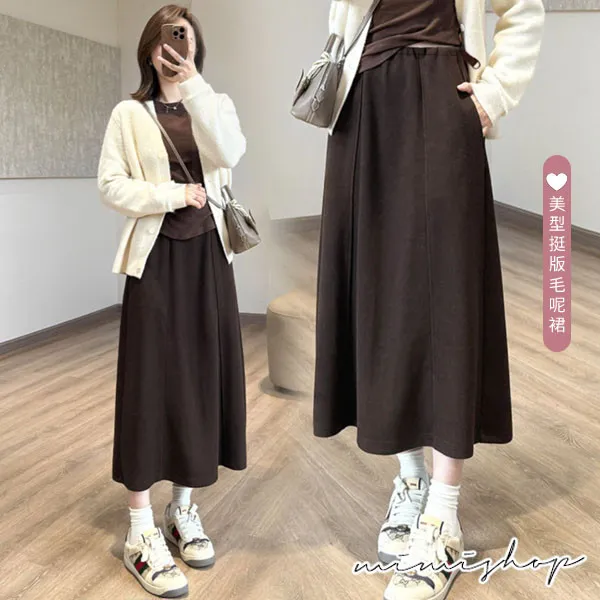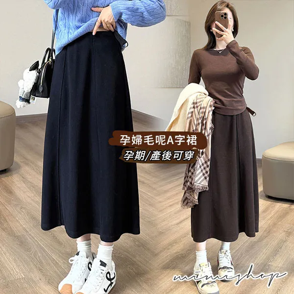 【P62435】隨意優雅 美型挺版毛呢A字裙 孕婦裙 長裙