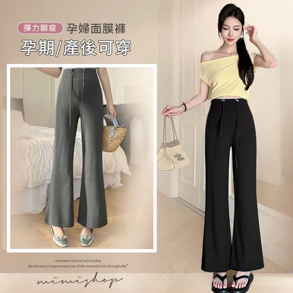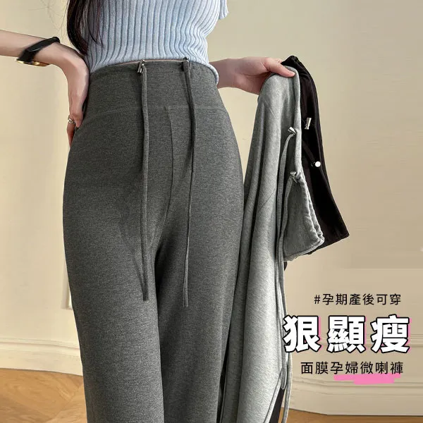 【P62437】完美修飾 顯瘦彈力面膜褲 微喇長褲 孕婦褲