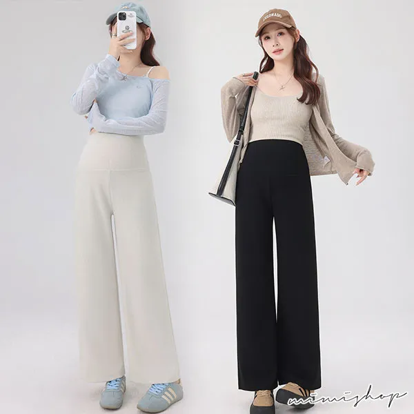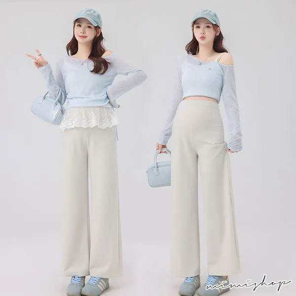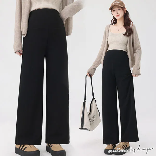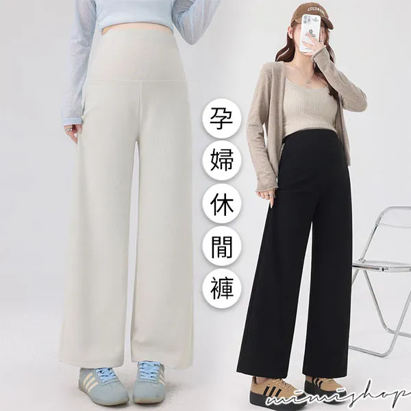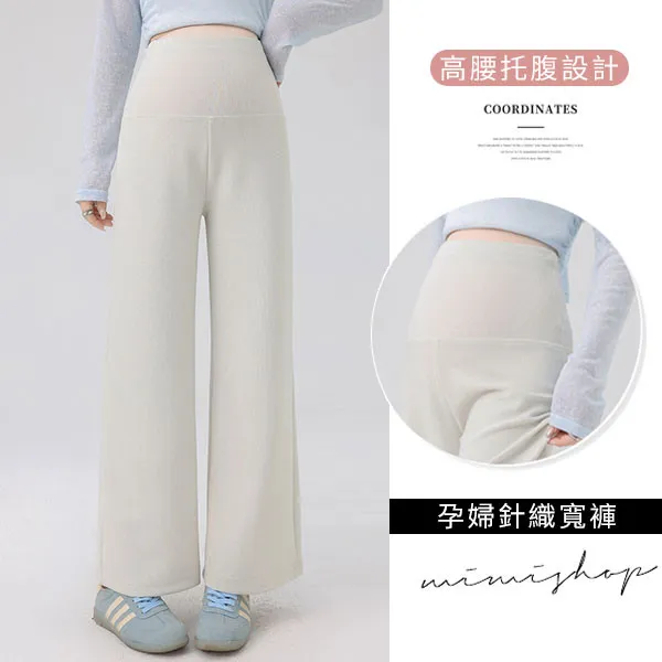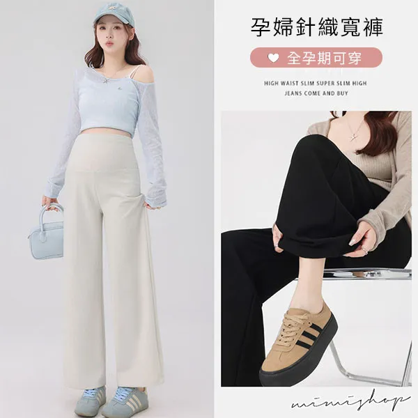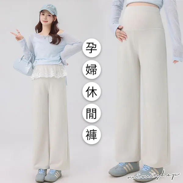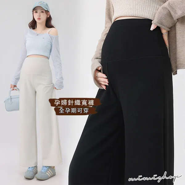 【P62443】俐落簡潔 修飾腿型針織寬褲 孕婦褲 休閒褲