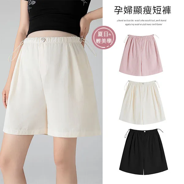 【P62445】夏日輕美學 顯瘦A字版型短褲 孕婦褲 機能型調節設計