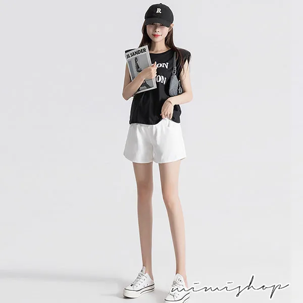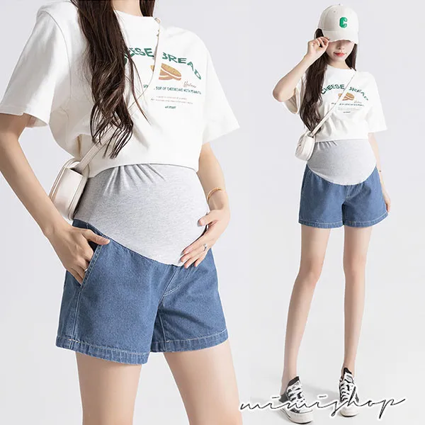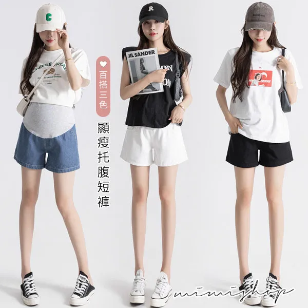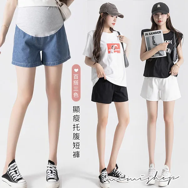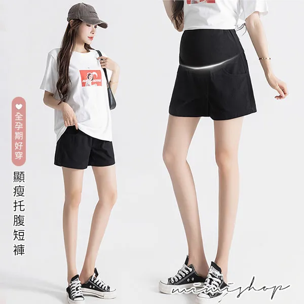【P62449】舒適羅曼史 顯瘦闊腿托腹短褲 孕婦褲