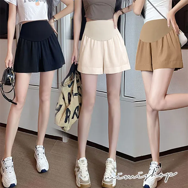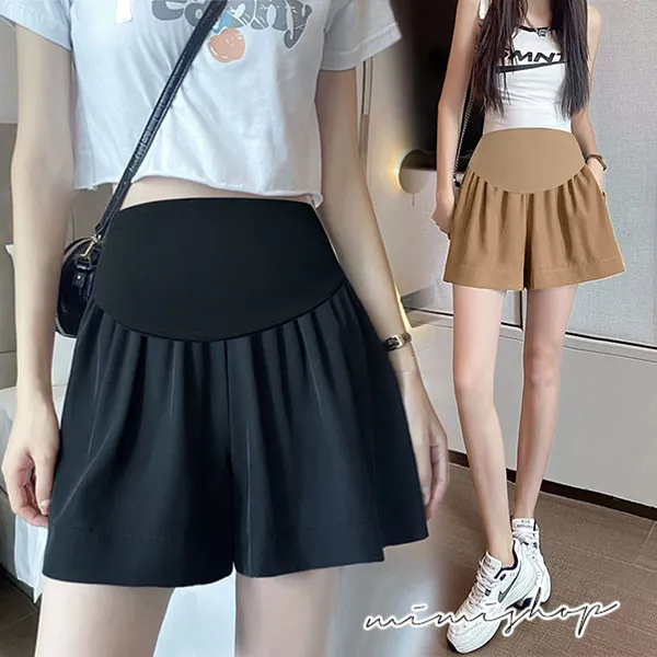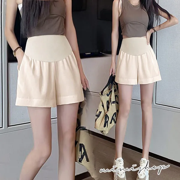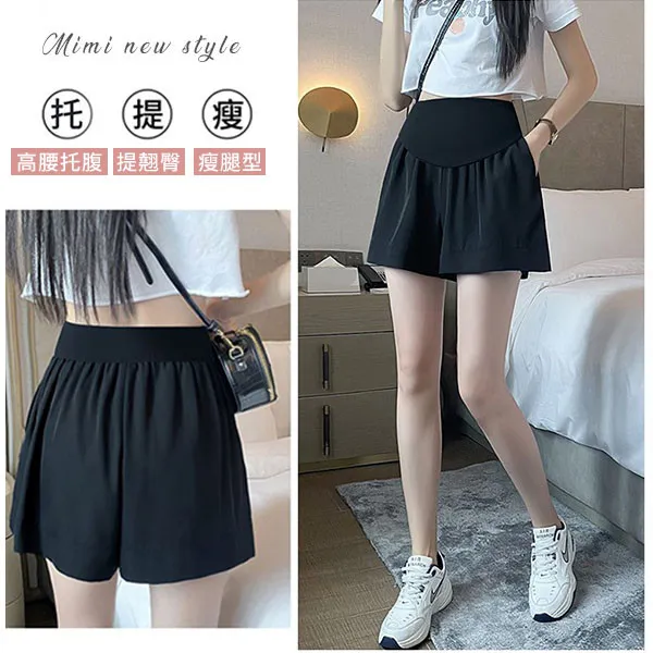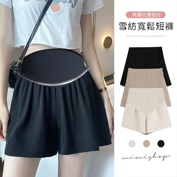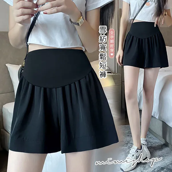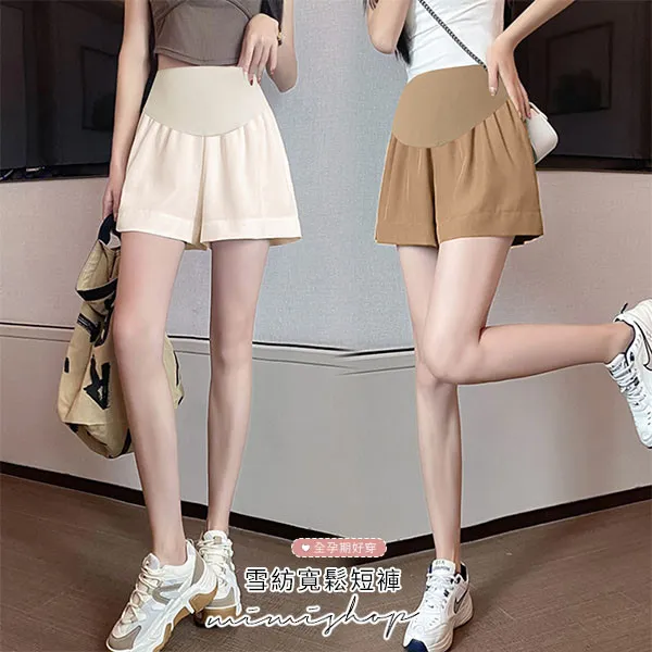 【P62454】簡約涼夏 輕盈雪紡寬鬆短褲 孕婦褲 托腹設計