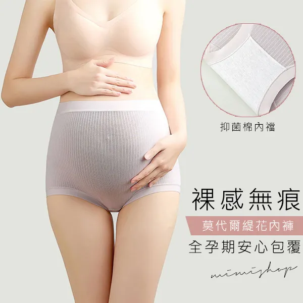 【P71043】抑菌透氣 高腰托腹 莫代爾緹花高彈力孕婦內褲 雲感無痕