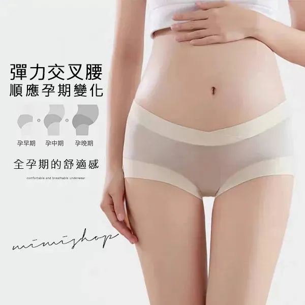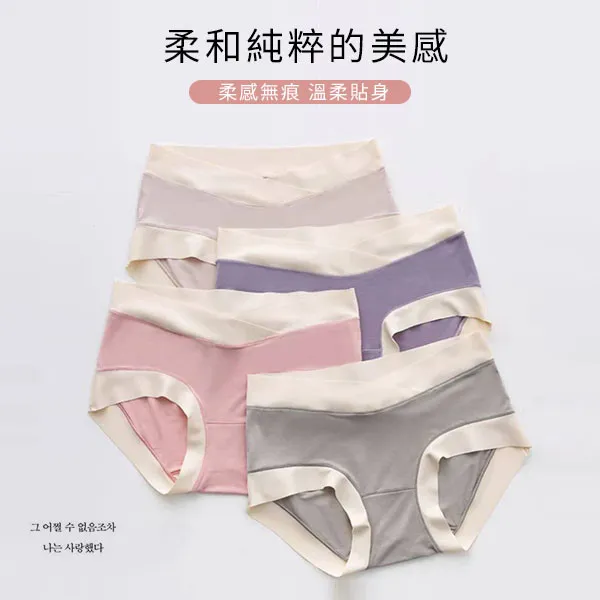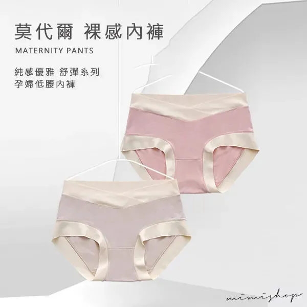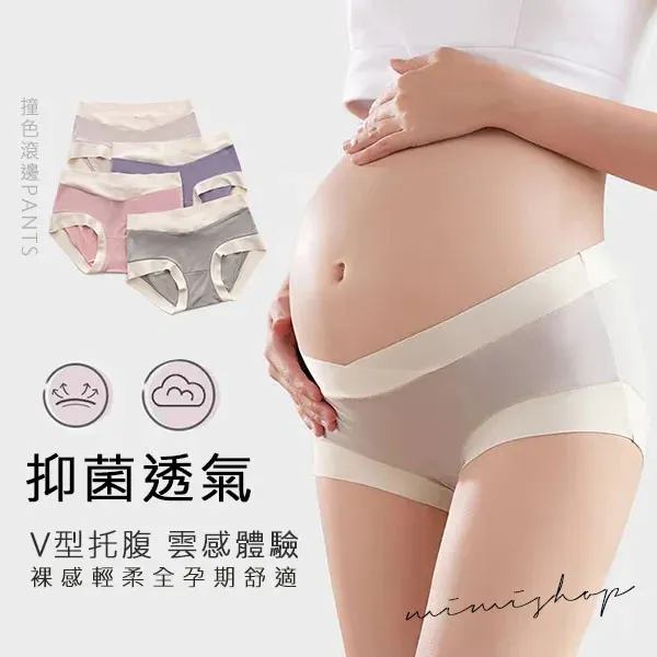 【P71055】撞色滾邊 V型低腰莫代爾彈力孕婦內褲 雲感無痕