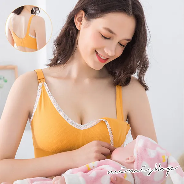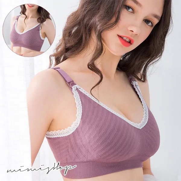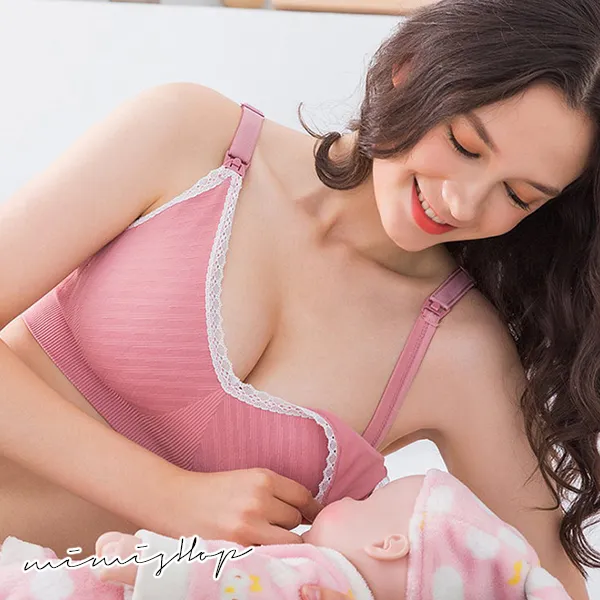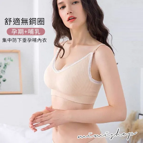 【P72045】胸型更集中 透氣斜紋蕾絲哺乳內衣 無鋼圈胸罩