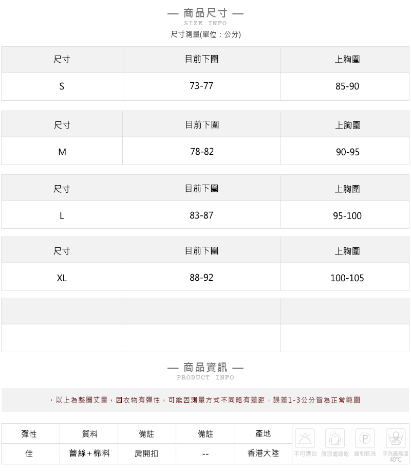 請務必在訂購之前,確認版型設計與尺寸表上的數據,符合自己的身形所需再下手,才是聰明的女性 ♡