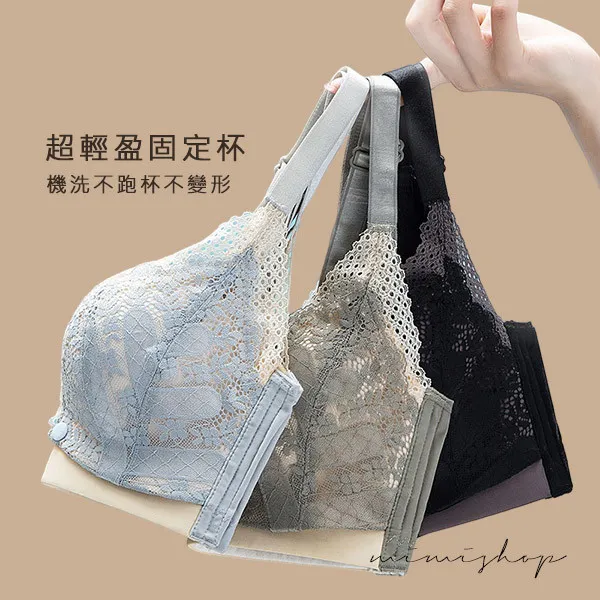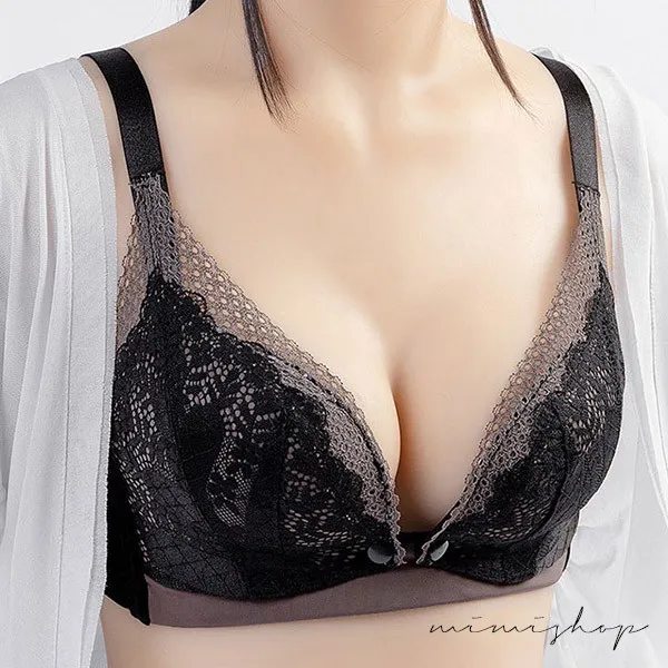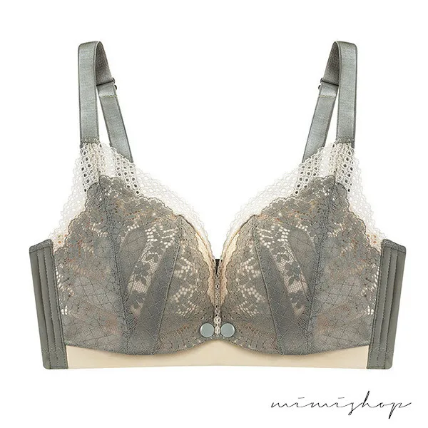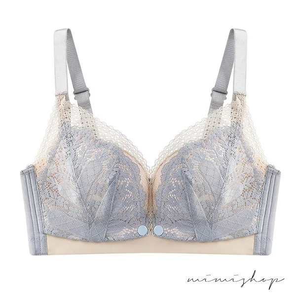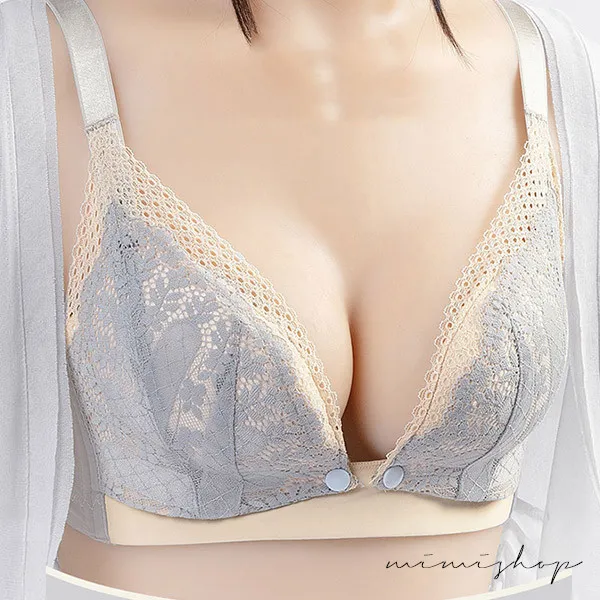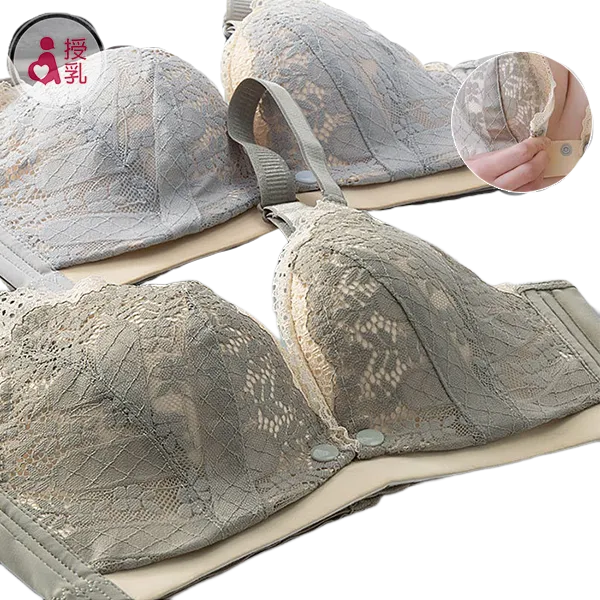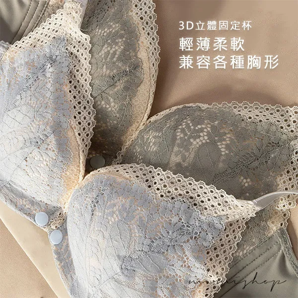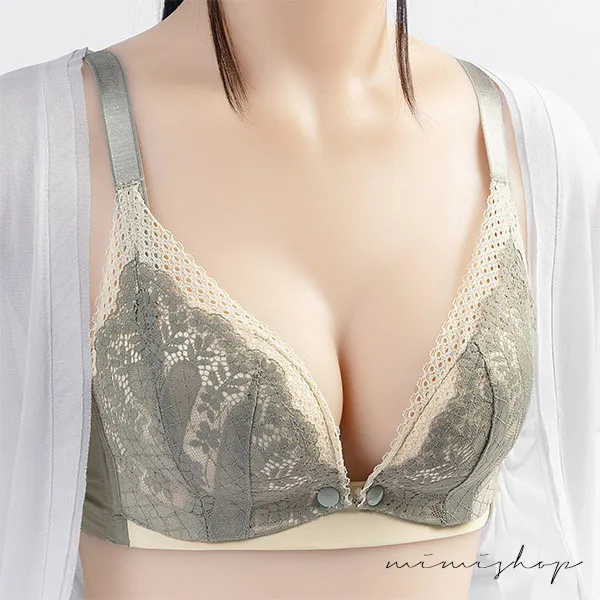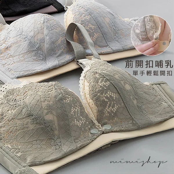 【P72096】雅緻蕾絲 透氣前開扣 無鋼圈哺乳內衣 集中防外擴