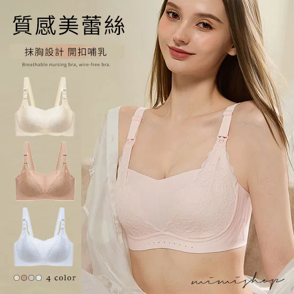【P72130】抹胸設計 美蕾絲質感 上托防垂透氣哺乳內衣 無鋼圈內衣