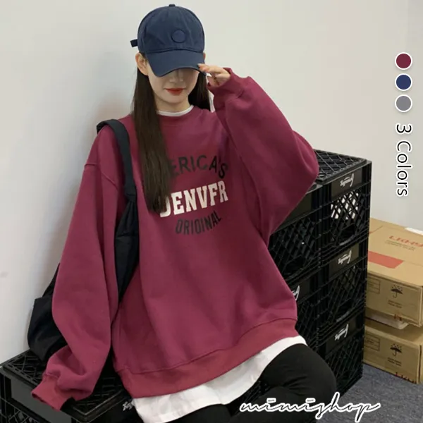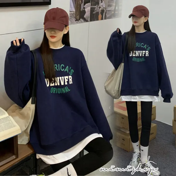 【PS511172】就愛舒適 美式假兩件長袖上衣 寬鬆大版